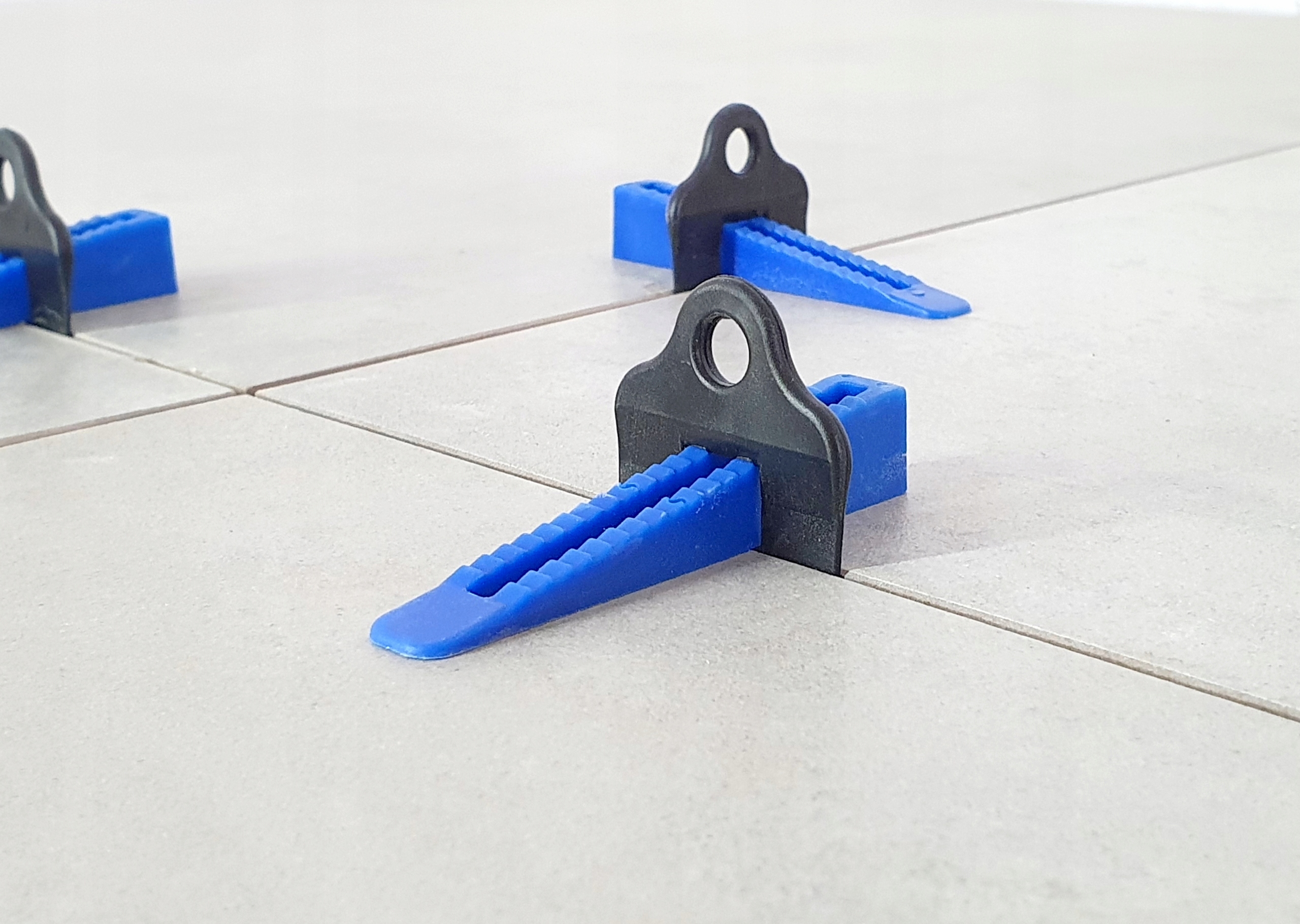 Ważne: Prawidłowy kierunek wsuwania klina zabezpiecza płytki przed przesunięciem i pozwala zachować równą szerokość fugi na całej powierzchni.