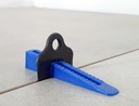 Ważne: Zbyt mocne dociśnięcie może spowodować niekontrolowane zerwanie klipsa. Prawidłowe dociśnięcie stabilizuje płytki i zapobiega samoczynnemu wysunięciu klina. Jeżeli podczas dociskania klina zauważysz wypływający nadmiar kleju w fudze, szczególnie w miejscu ułożenia klipsa, usuń go. Klej który wypływa ponad podstawkę, może zablokować specjalnie pocienione miejsce zerwania klipsa, a po pełnym związaniu uniemożliwi jego usunięcie.