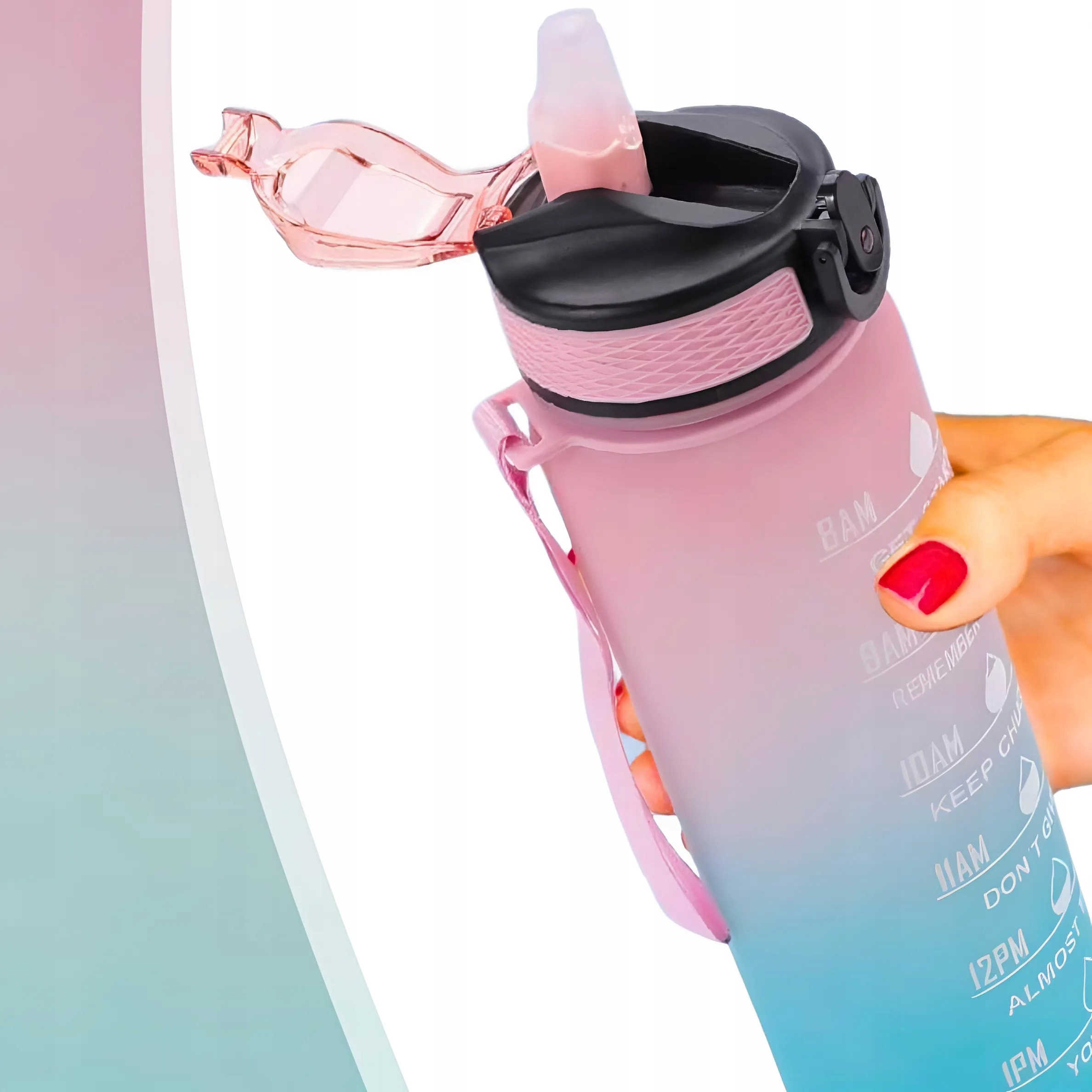 Zacznij dzień od łyku orzeźwiającej wody, kontroluj nawodnienie dzięki godzinowej podziałce i ciesz się komfortem picia przez długą, składaną słomkę – w biurze, na treningu i w podróży.