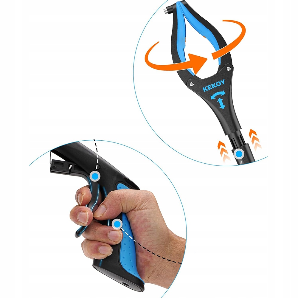 Ergonomiczny uchwyt tych szczypiec do śmieci znacznie zmniejsza obciążenie dłoni i nadgarstków, a głowica obrotowa 360° umożliwia chwytanie pod dowolnym kątem. Zintegrowane magnesy pomagają w łatwym podnoszeniu małych metalowych przedmiotów, takich jak klucze lub gwoździe.