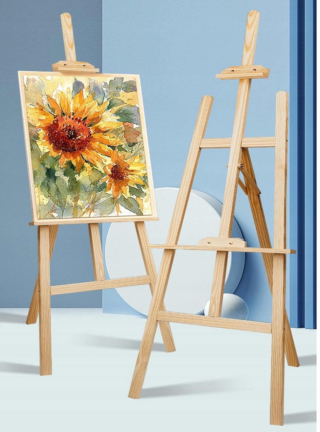 Łatwa w obsłudze sztaluga z regulacją wysokości, umożliwiająca dostosowanie pozycji płótna do indywidualnych potrzeb i komfortu pracy.