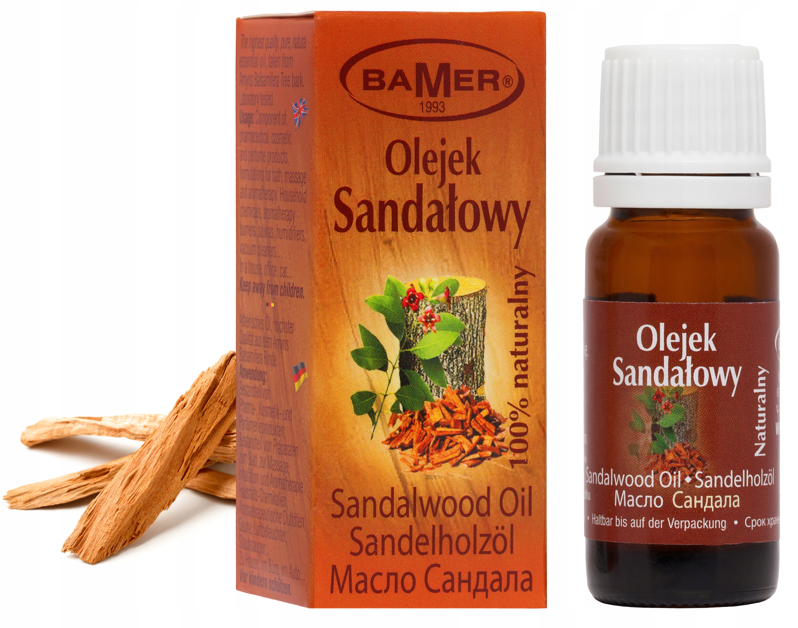 SANDAŁOWY - OLEJEK ETERYCZNY BAMER 100%, USPOKAJA, WYGŁADZA I NAWILŻA SKÓRĘ