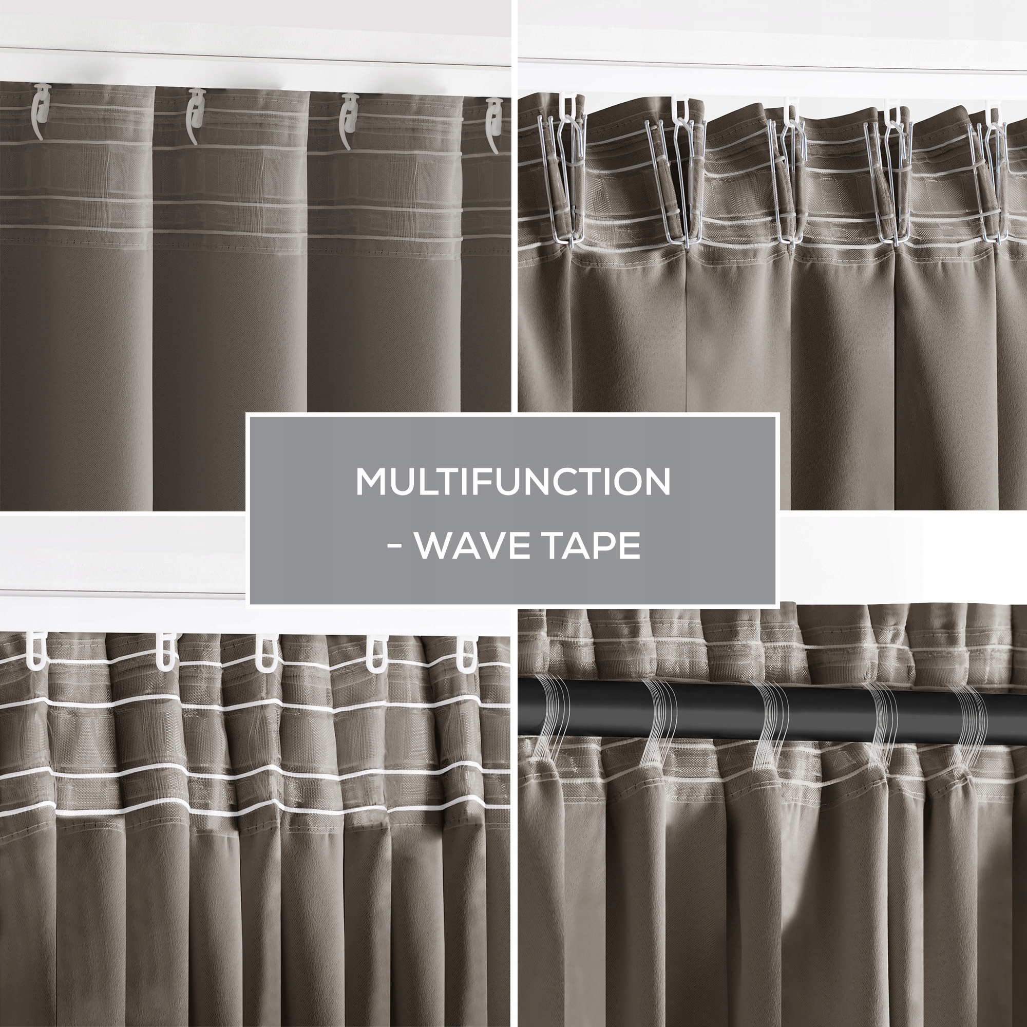 Elegancki design zasłon zapewnia ich wszechstronność – doskonale komponują się z różnymi stylami aranżacji. Możliwość upięcia na taśmie zapewnia łatwość montażu oraz regulacji ułożenia materiału, co ułatwia dostosowanie ich do Twoich indywidualnych potrzeb i preferencji.