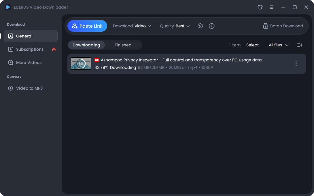 Ease US Video Downloader to niezawodna i bezpieczna opcja pobierania filmów. Unika pobierania szkodliwych programów i może wydajnie zarządzać dużymi plikami i wieloma pobraniami jednocześnie. Regularne aktualizacje zapewniają pełną kompatybilność i płynne działanie na różnych platformach. W przeciwieństwie do innych aplikacji do pobierania filmów, EaseUS Video Downloader analizuje filmy bezpośrednio na stronie wyników i optymalizuje proces pobierania w celu uzyskania maksymalnej prędkości, umożliwiając szybsze i bardziej wydajne pobieranie.