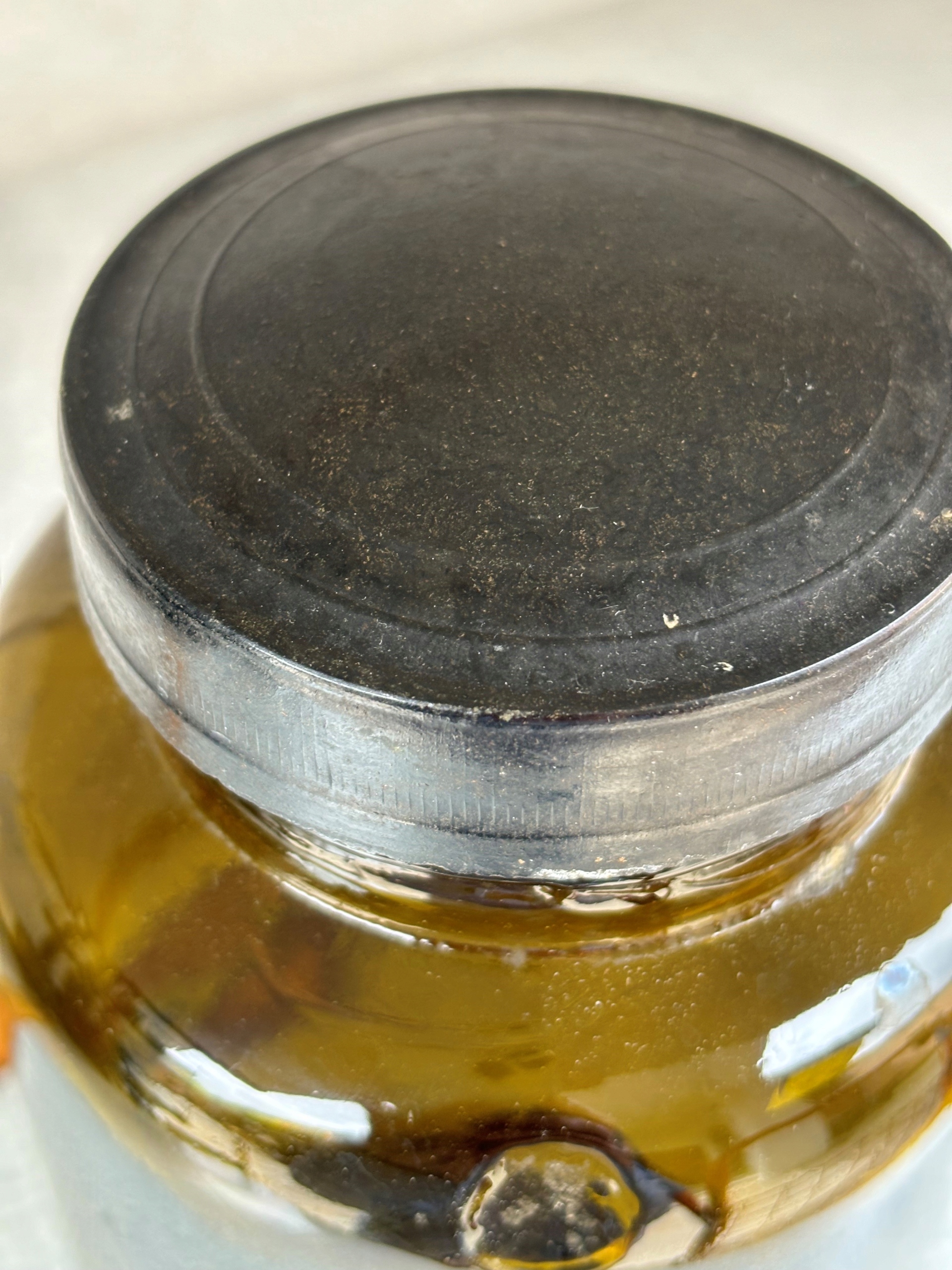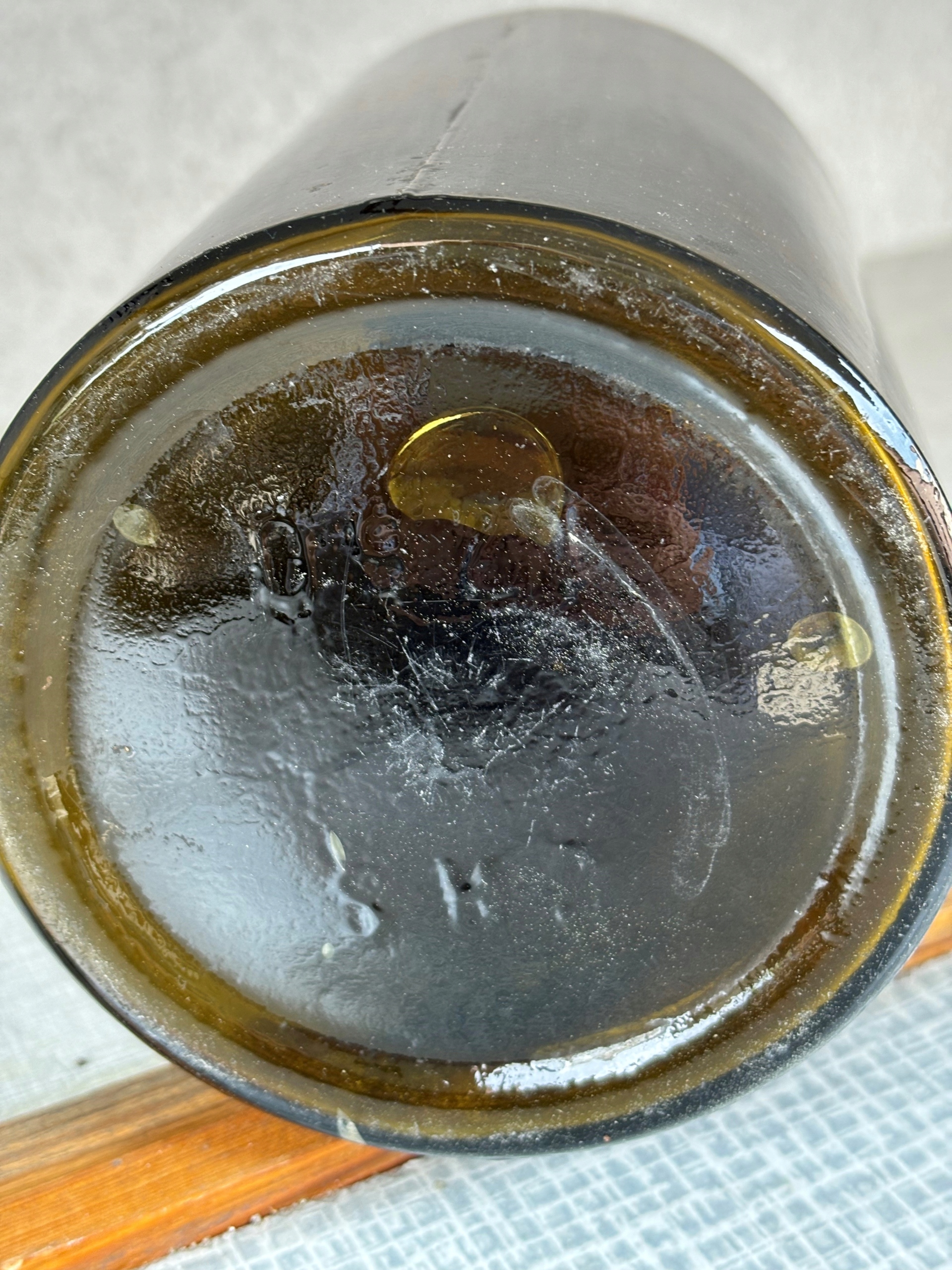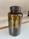 Butelka apteczna brązowa wykonana z grubego szkła prawdopodobnie z okresu PRL. Ślady użytkowania. Wymiary; wysokość 21 x 10 x 6,5 cm.