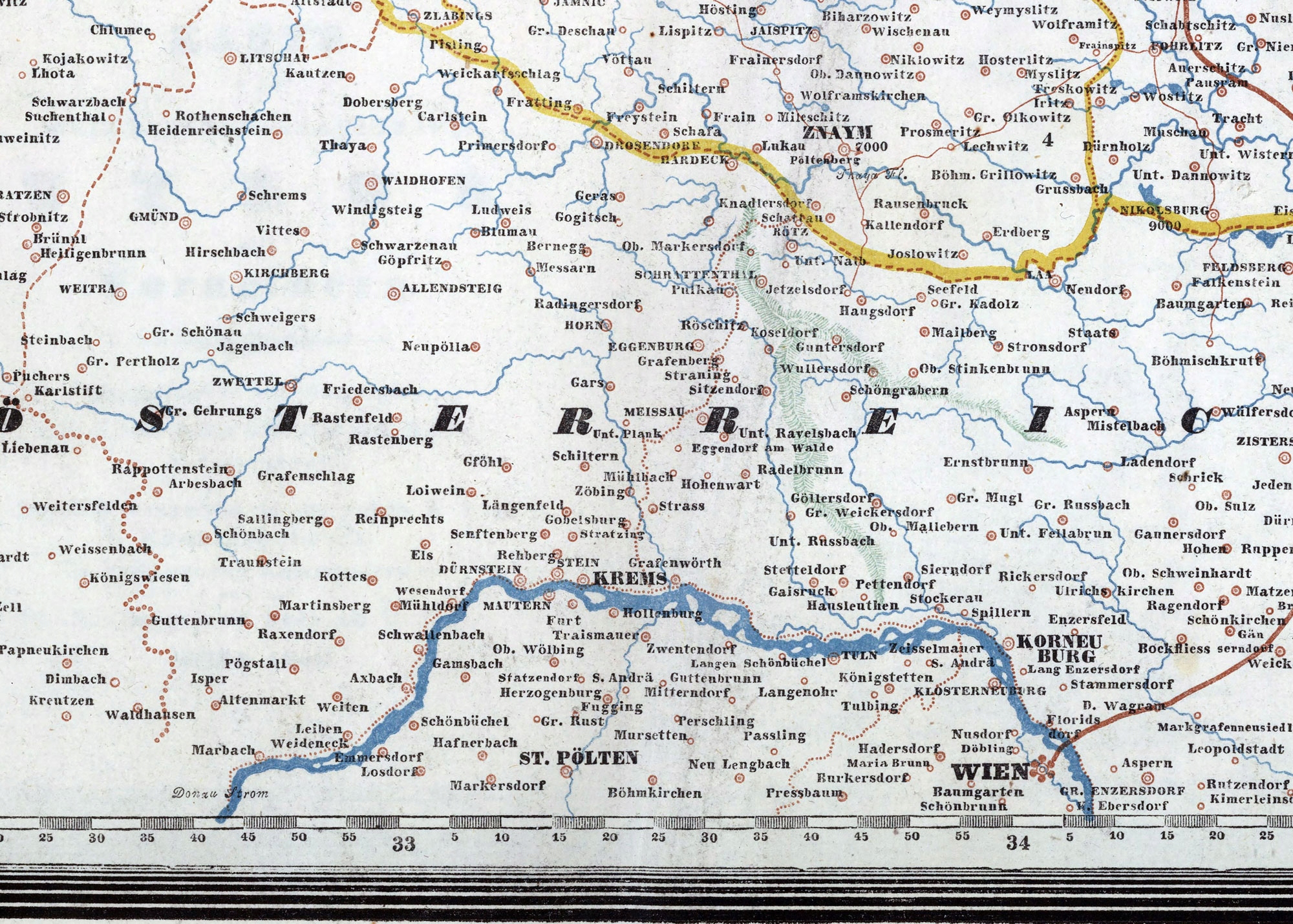 Ta szczegółowa mapa przedstawia terytoria Moraw i Śląska w połowie XIX wieku. Opracowana przez austriackiego geografa Franza Raffelspergera, została wydana w Wiedniu przez J. Bermanna & Sohn. Mapa stanowi część „Erster typometrischer Atlas” i odzwierciedla ówczesne granice oraz strukturę administracyjną regionu.archive.org