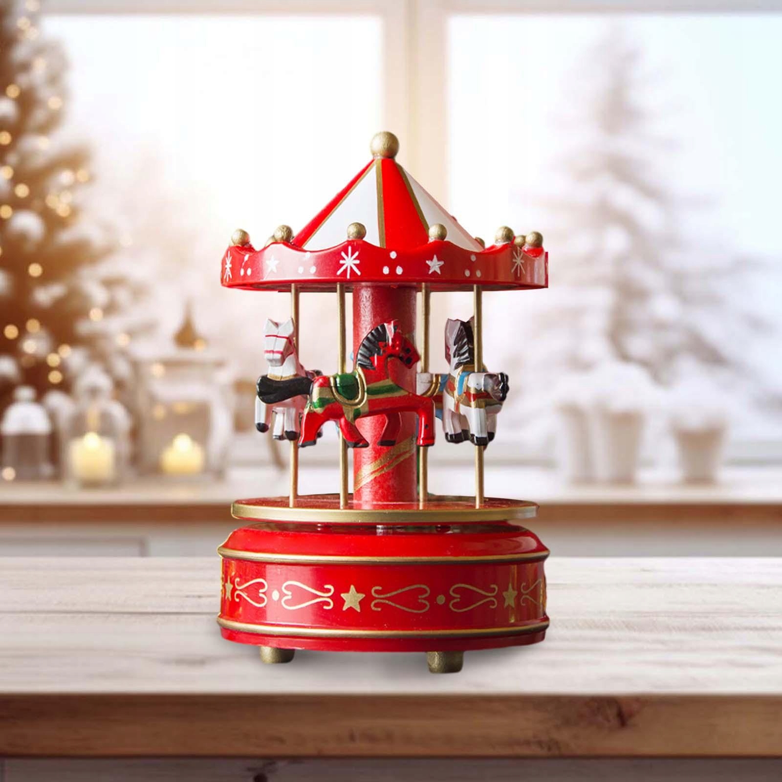 Pudełko muzyczne z drewna Świąteczne rękodzieło Dekoracja Obrotowa do dekoracji świątecznej Czerwona