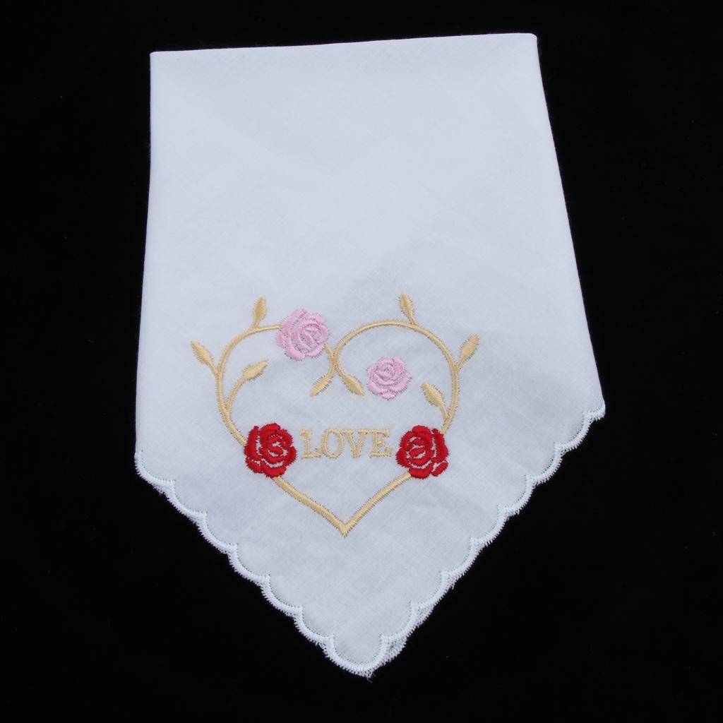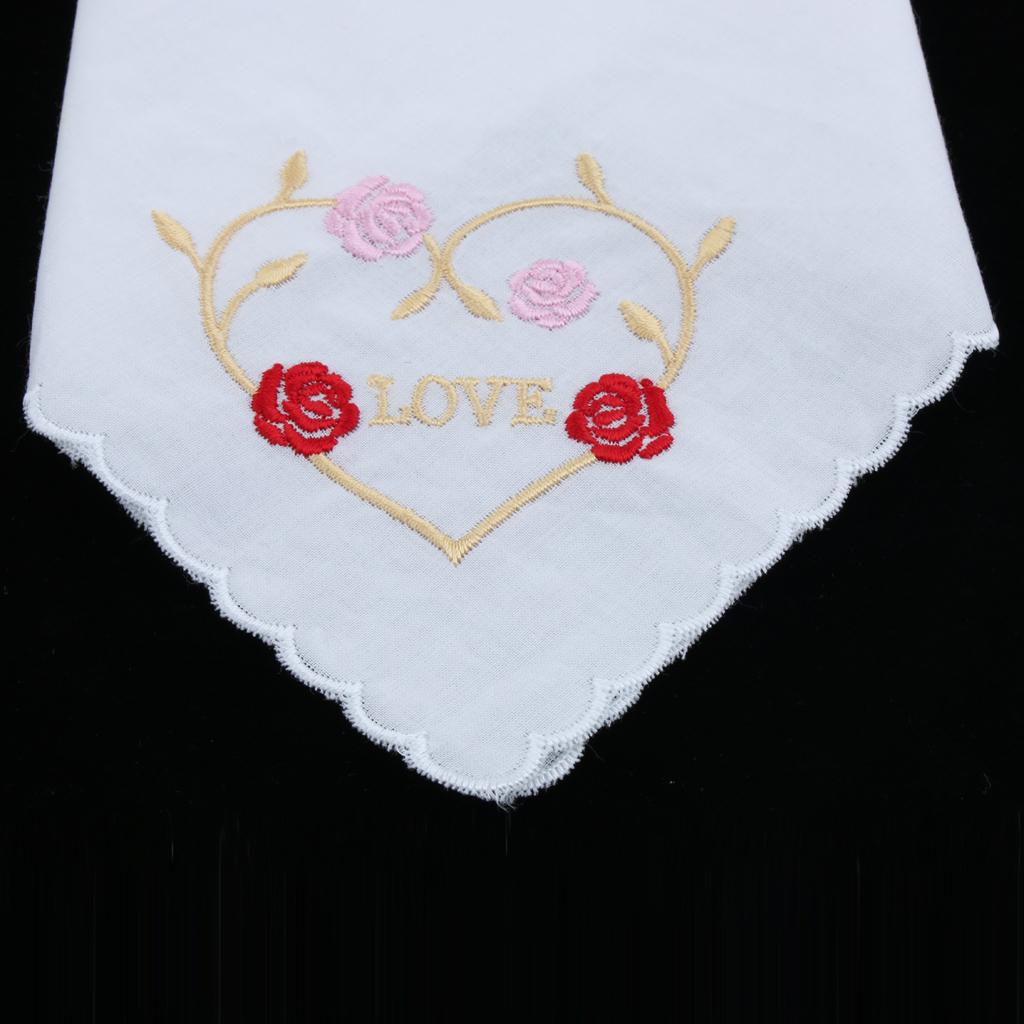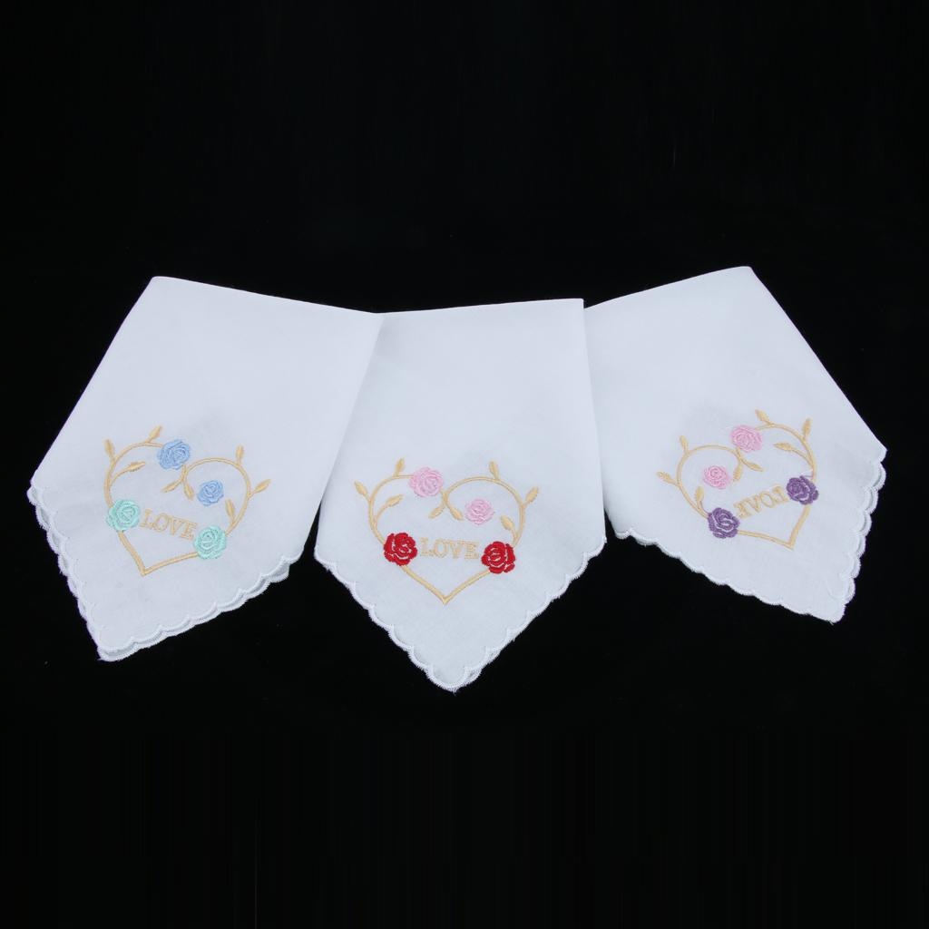 Women Ladies Cotton Heart Floral Embroidery Handkerchiefs Hankie Set 3