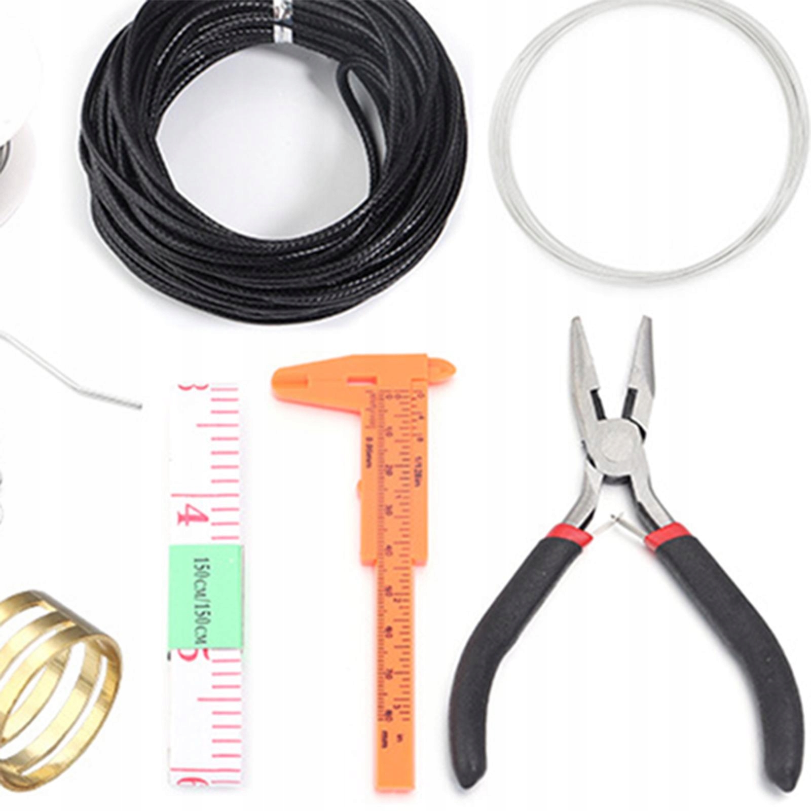 Pakiet zawiera:30 zapięć homara (12x6mm), 50 końcówek wstążki (4x2mm),200 zaciska koraliki (2mm), 20 kaucji zapięcia szczypcowego (9x6mm),70 szpilek oczkowych śrubowych (4x10mm), 70 szpilek oczkowych (20mm), 20 haczyków na kolczyki,20 zaciskaczy zaciskowych wstążkowych z pętlą(10mm), 2 worki pierścieni skokowych w rozmiarach 4mm & 8mm,każdy o wadze około 10g, 1 szczypce, 1 otwieracz do skoków, 1 pęseta prosta,1 zakrzywiona pęseta, 1 rolka elastycznego sznurka(0.8mm), 1 rolka drutu stalowego(0.54mm),1 rolka (2mmx10m), 1 rolka złotego drutu do beadingu(0.6mm), 1 suwmiarka, miara