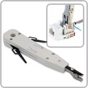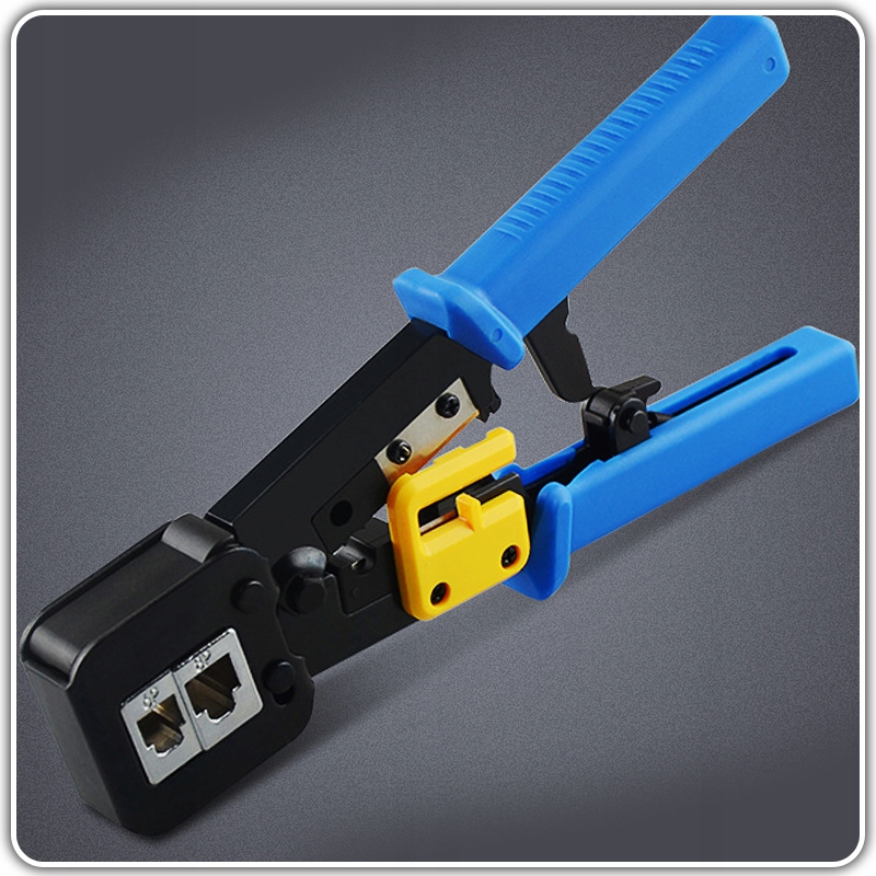 Narzędzie służące do zaciskania wtyków modularnych. Wyposażona w obcinarkę, blokadę otwarcia oraz boczny mechanizm zaciskania.