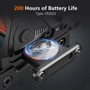 ----- Długi na baterie: niski pobór mocy optyki czerwona kropka przez ponad 200 godzin pracy na baterii. Dwugodzinna funkcja automatycznego wyłączania zasilania sprawia, że nie martwisz się, aby zapomnieć go wyłączyć.