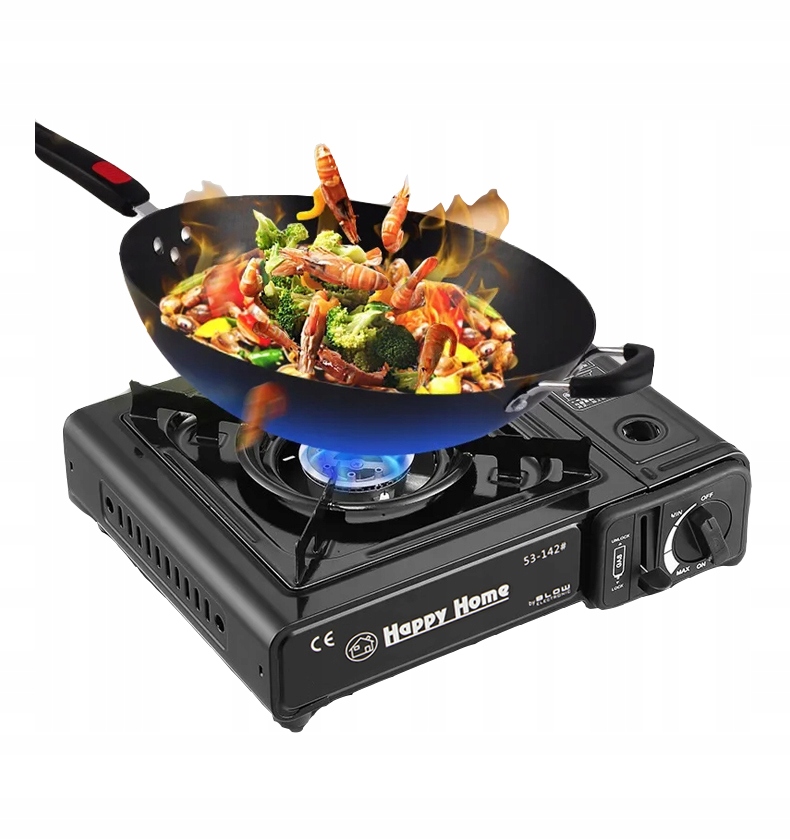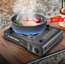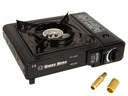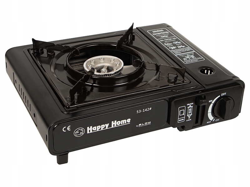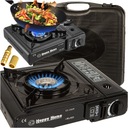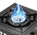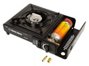 Kuchenka gazowa o mocy 2200W, zasilana standardowymi kartuszami gazowymi lub butlą gazową (przejściówka w zestawie). W łatwy sposób można podłączyć kartusz, a następnie wymienić go po zużyciu na nowy. Kuchenka posiada wbudowany automatyczny zapalnik piezoelektryczny, do jej odpalenia nie są potrzebne zapałki ani zapalniczka. Dodatkowo posiada pokrętło regulacji płomienia oraz suwak z regulacją dopływu gazu.