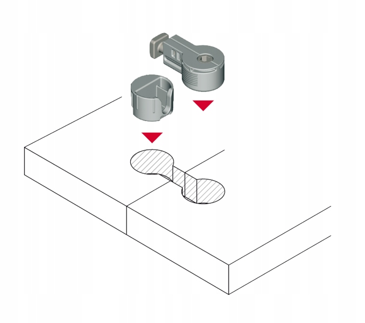 Złącze QUICK FI 35 mm pozwala na sprawne łączeni blatów i płyt o grubości minimum 25 mm w zdecydowanie wygodniejszy sposób niż przy wykorzystaniu tradycyjnych śrub.