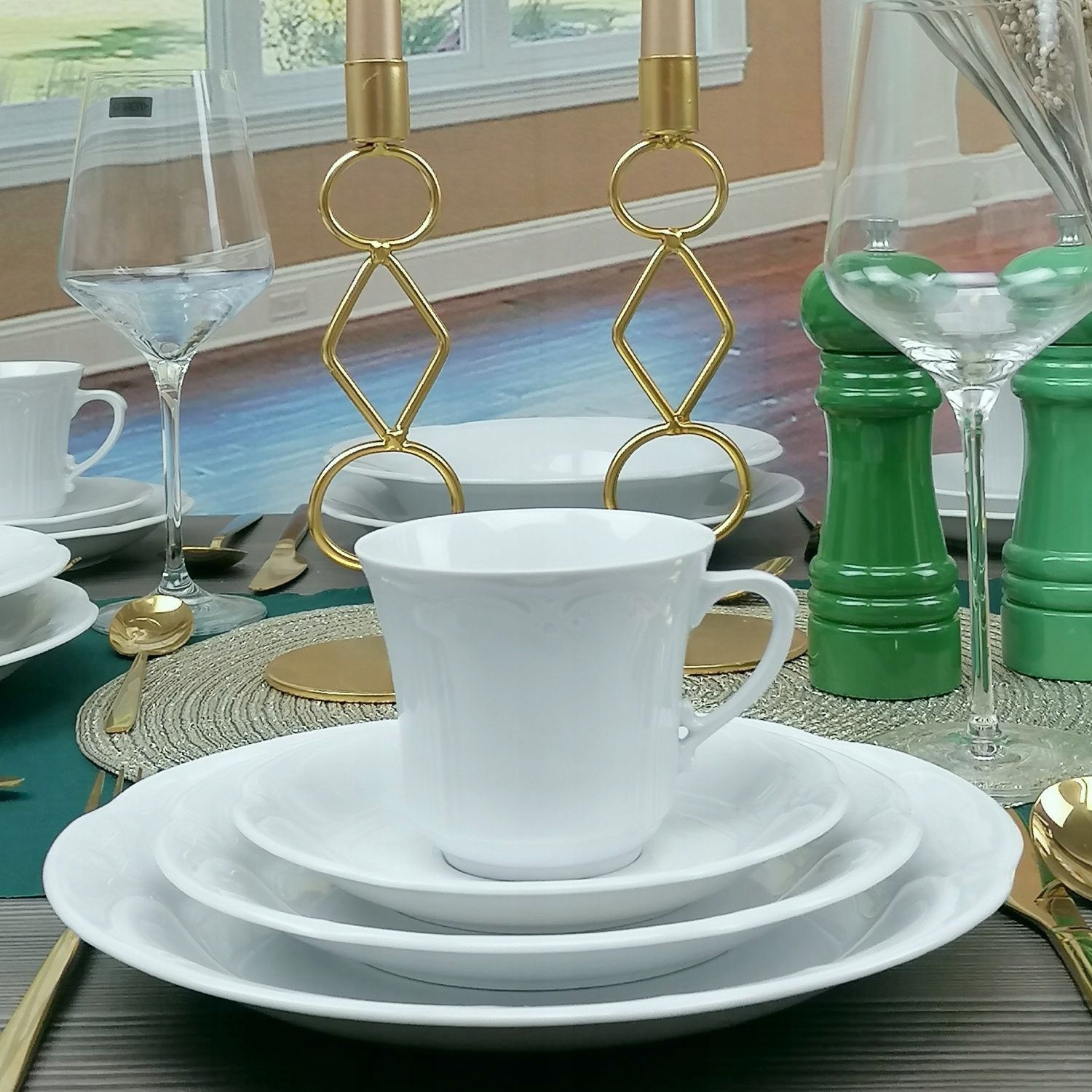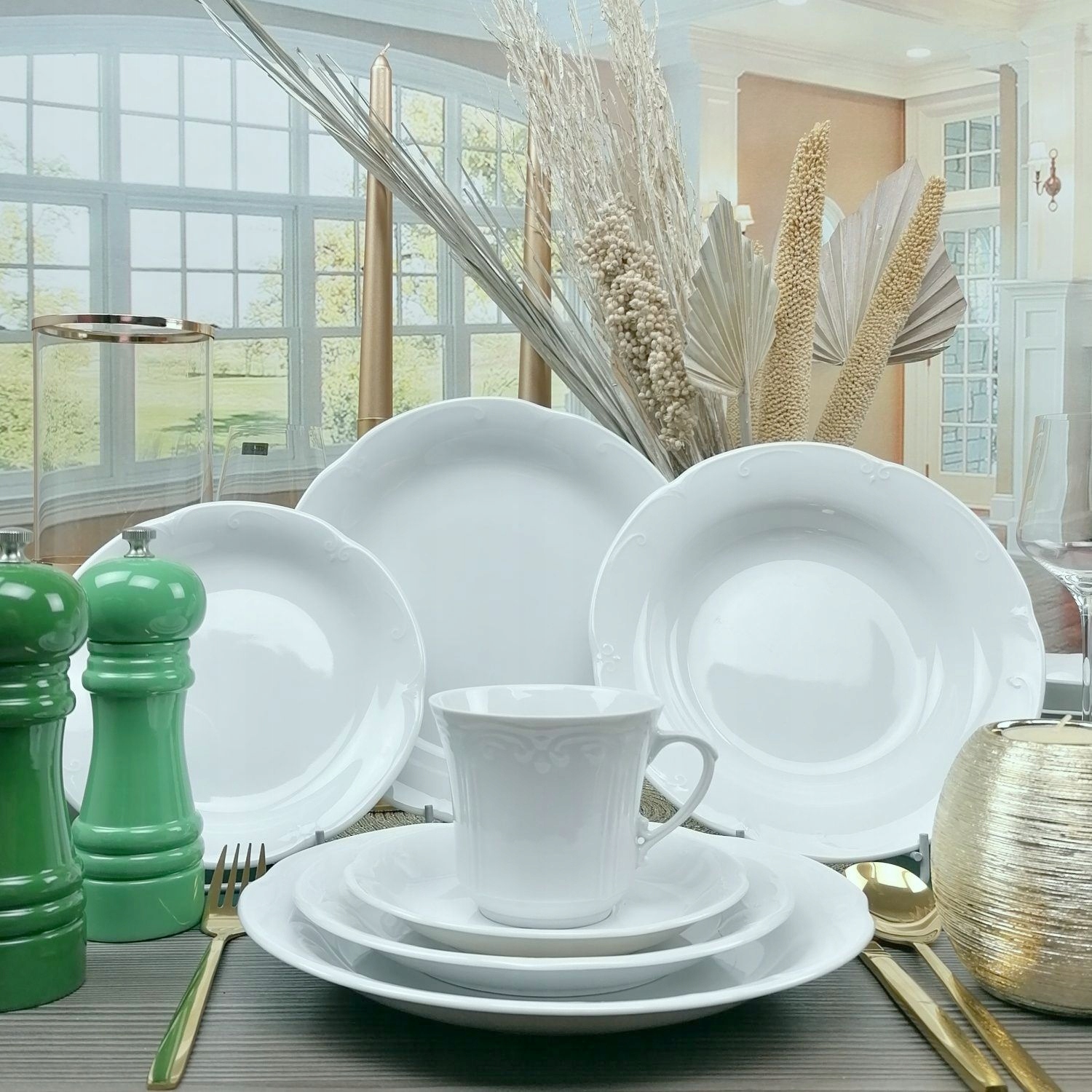Белый фарфор, niedekorowana. Универсальный - подходит для любого интерьера и декора стола