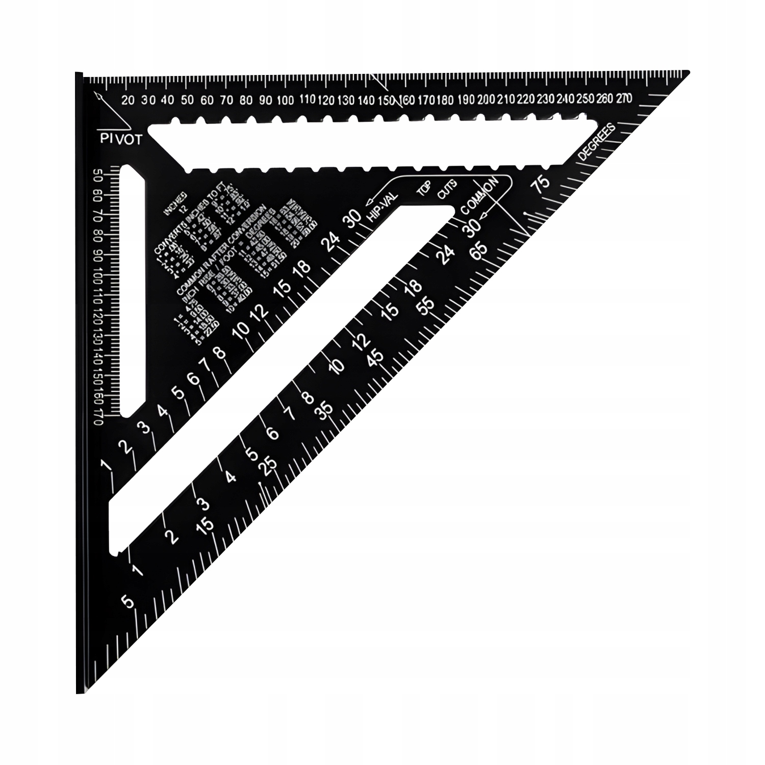Kątownik o wymiarach 300 x 300 x 430 mm sprawdzi się zarówno do pomiarów 90°, jak i 45°. Szeroka podstawa (2,8 cm) oraz grubość 4 mm zapewniają stabilność i wygodę użytkowania podczas pracy.