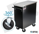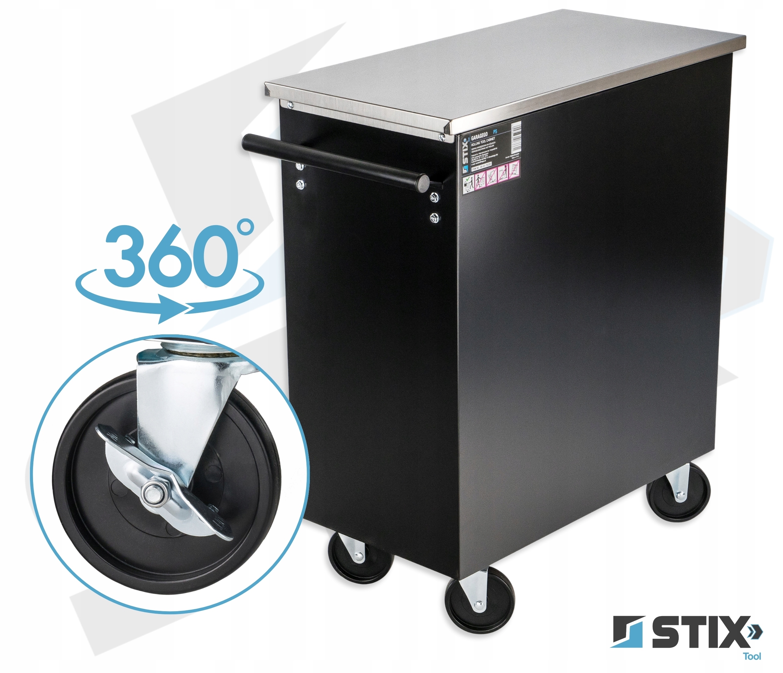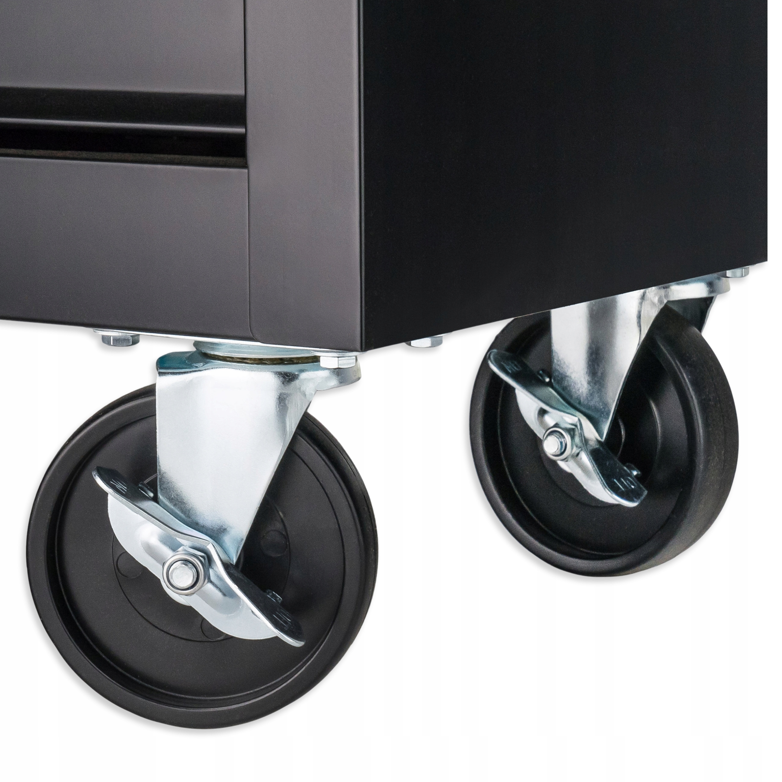 Szafka została wyposażona w cztery duże, skrętne koła o średnicy 100 mm, z których każde posiada własny hamulec.
