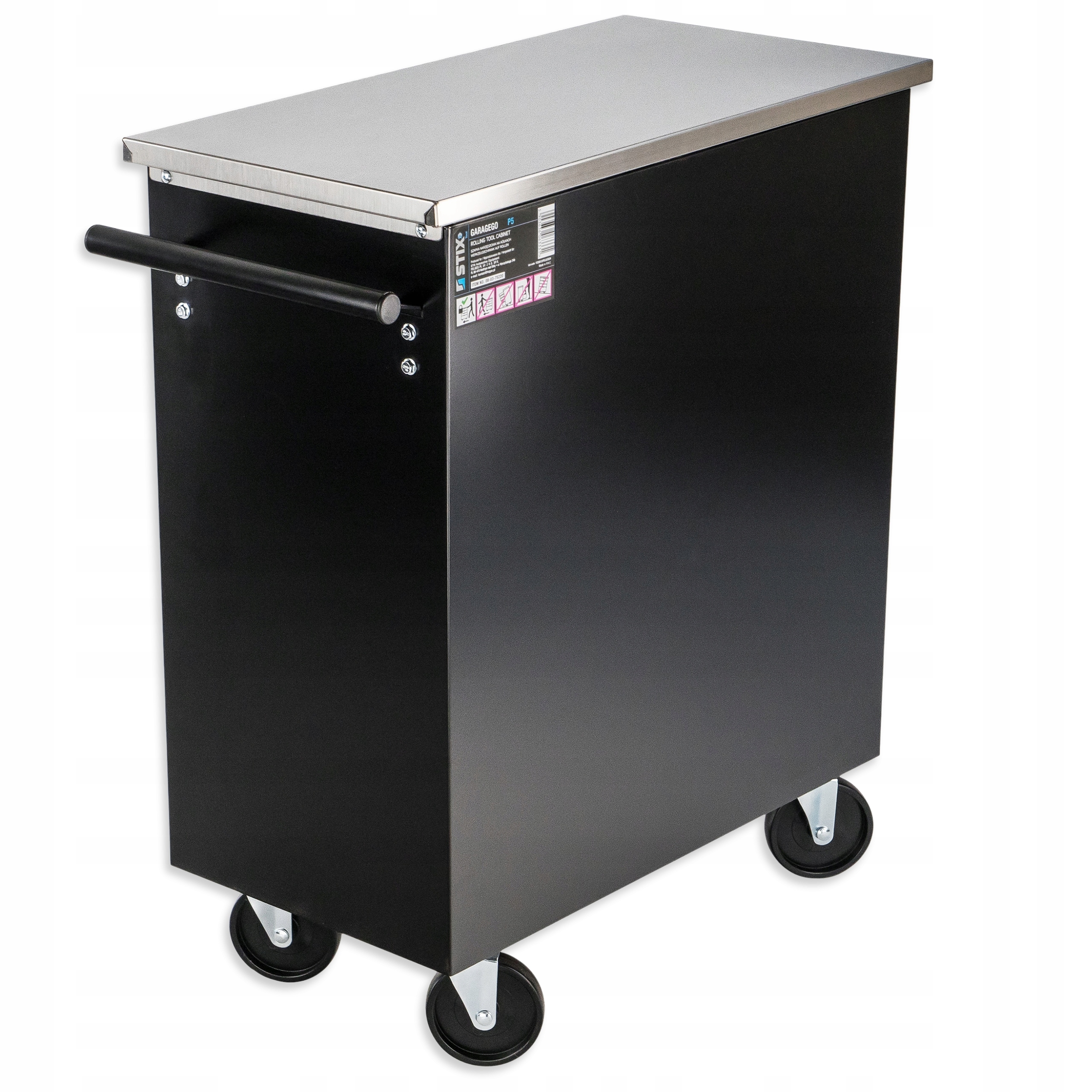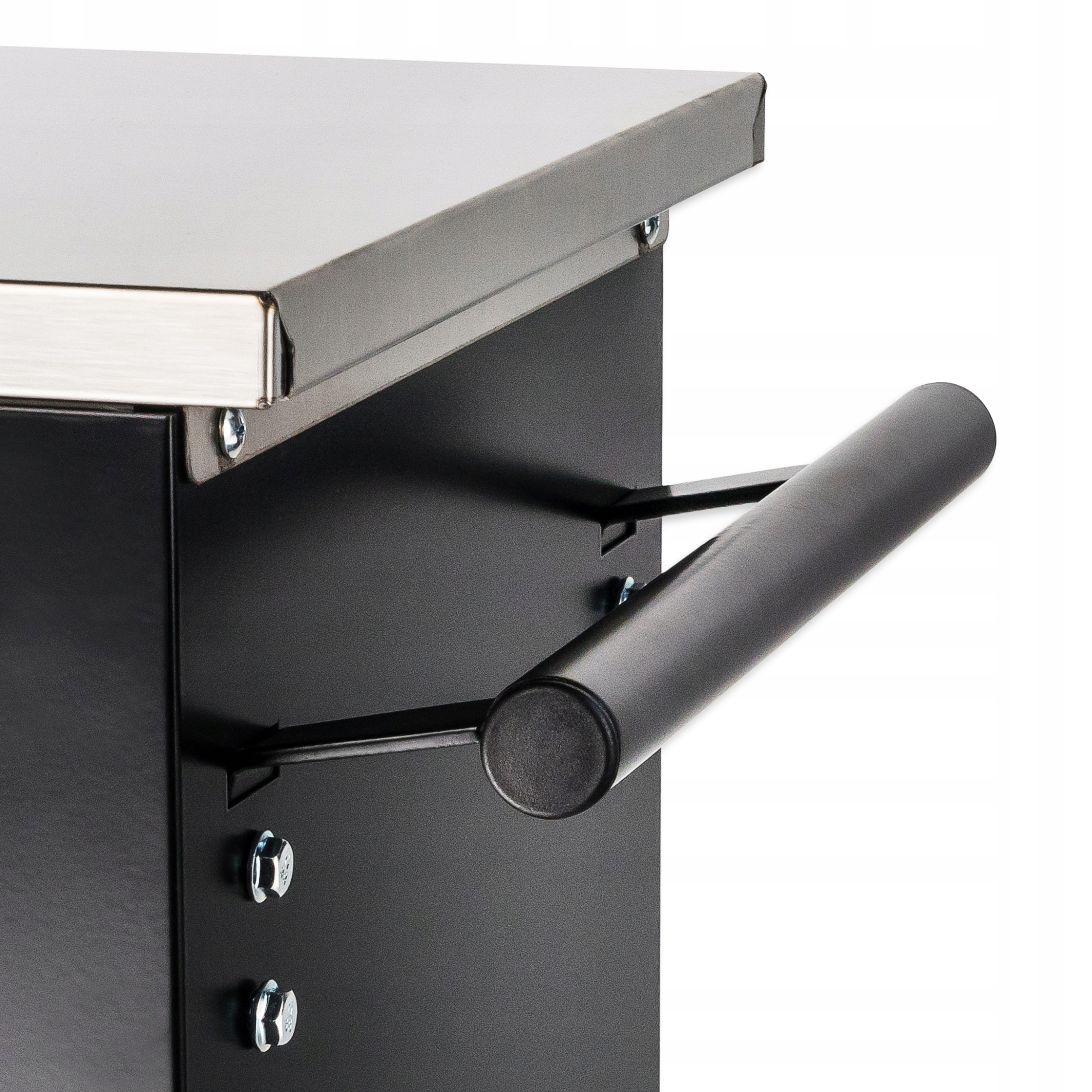 Wierzch szafki wykonano z trwałej stali nierdzewnej, odpornej na uszkodzenia mechaniczne i chemikalia.