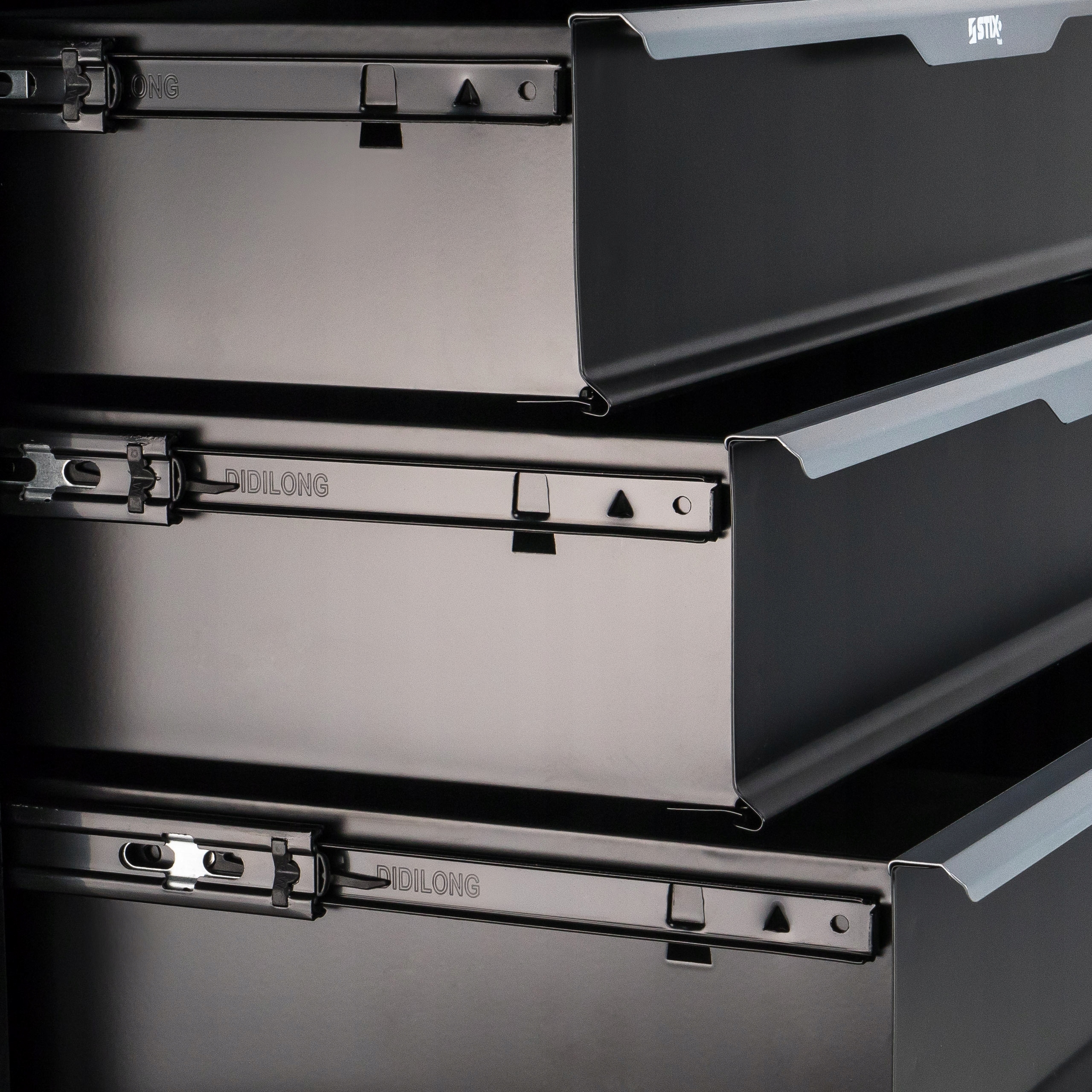 Szafka GarageGo P5 wyposażona jest w pięć pojemnych szuflad o wymiarach 510 × 280 × 95 mm.