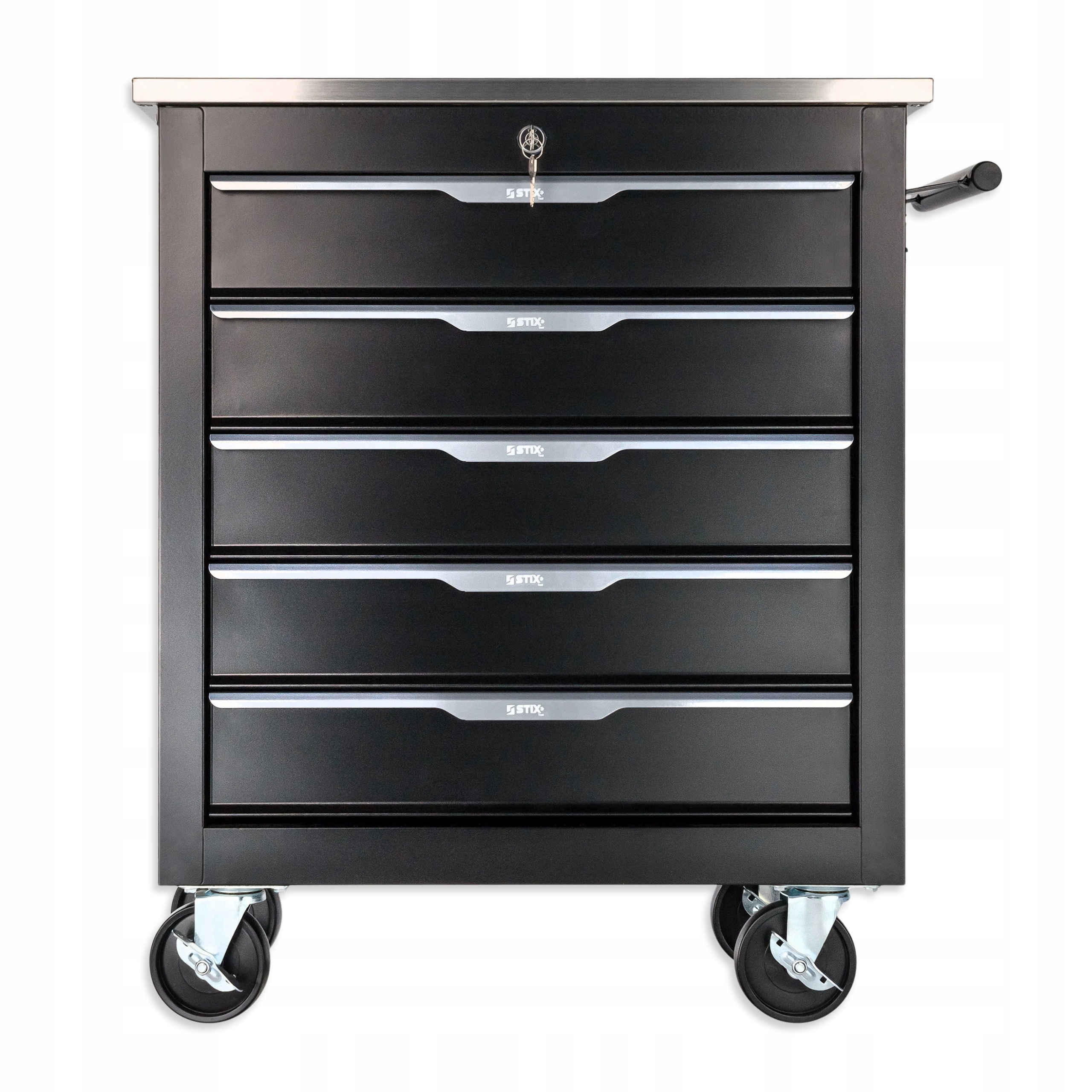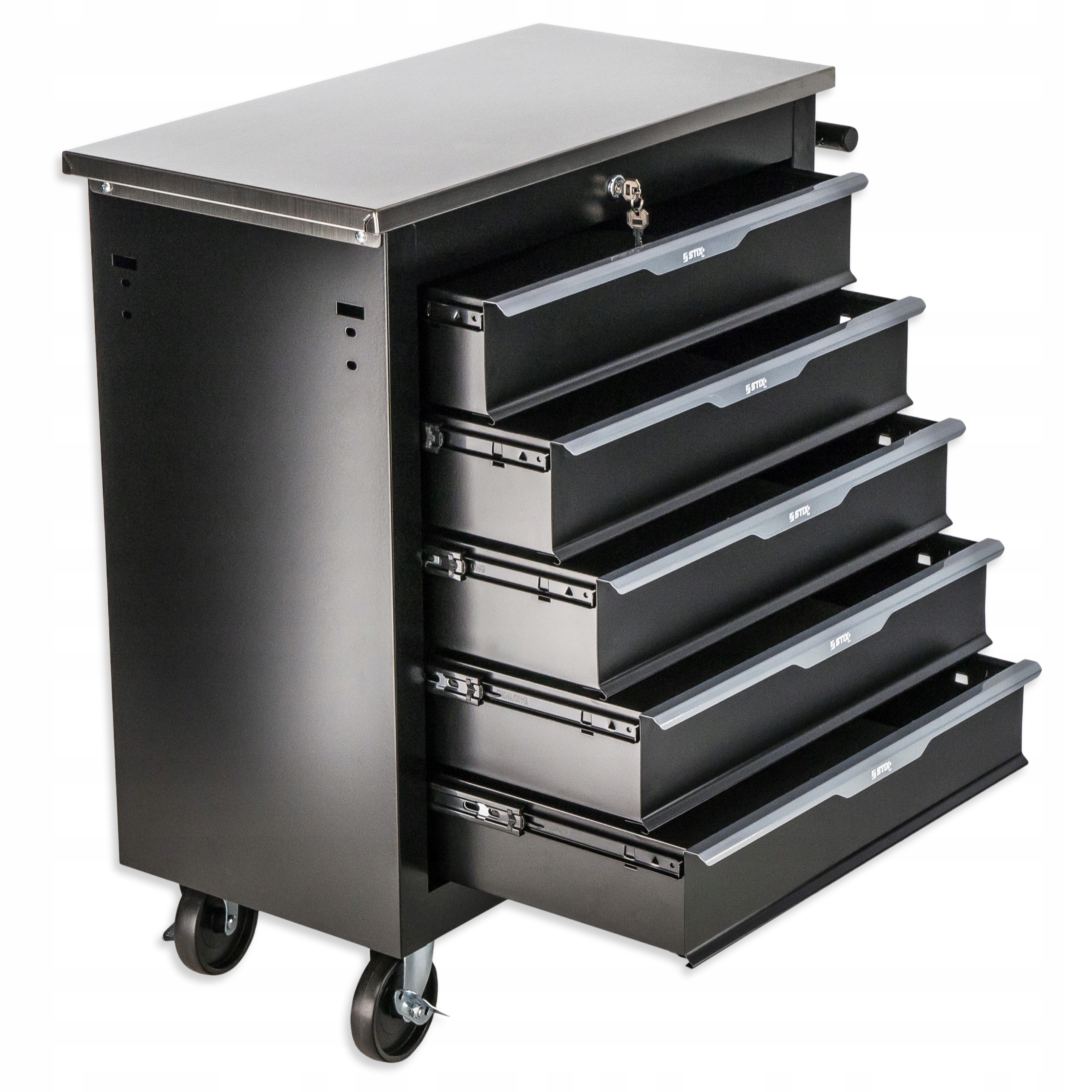 Kompaktowa i solidna szafka narzędziowa GarageGo P5 to praktyczne rozwiązanie zarówno dla domowych majsterkowiczów, jak i profesjonalnych użytkowników. Dzięki pięciu pojemnym szufladom, stalowemu blatowi i obrotowym kółkom z hamulcami, zapewnia wygodny dostęp do narzędzi i pełną mobilność w przestrzeni roboczej.