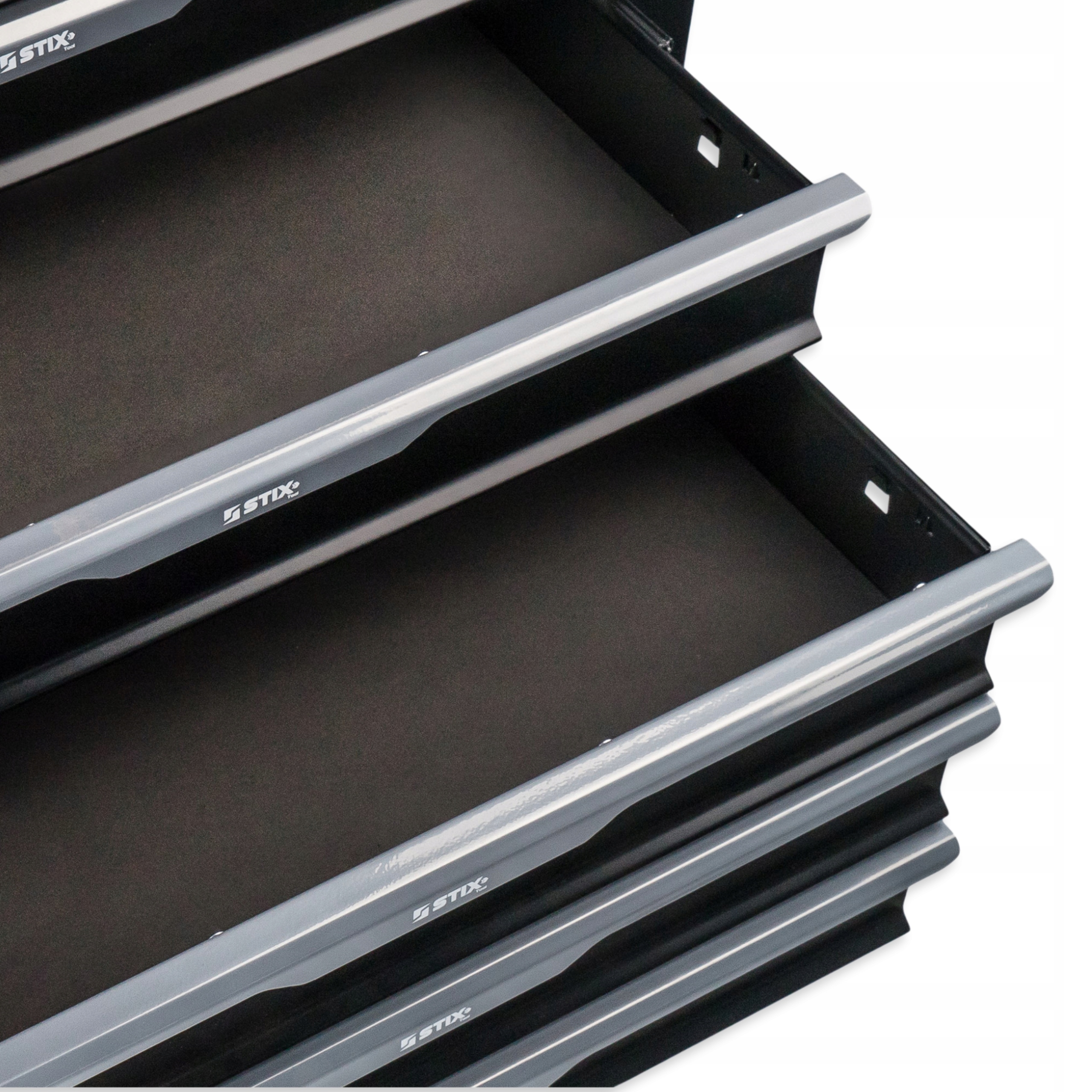 Dodatkowo, wnętrze szuflad wyłożone jest matą z pianki odpornej na zabrudzenia, wilgoć i oleje – co ułatwia utrzymanie porządku.