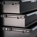 Każda z nich porusza się na kulkowych prowadnicach z pełnym wysuwem, zapewniając wygodny i szybki dostęp do całej zawartości.