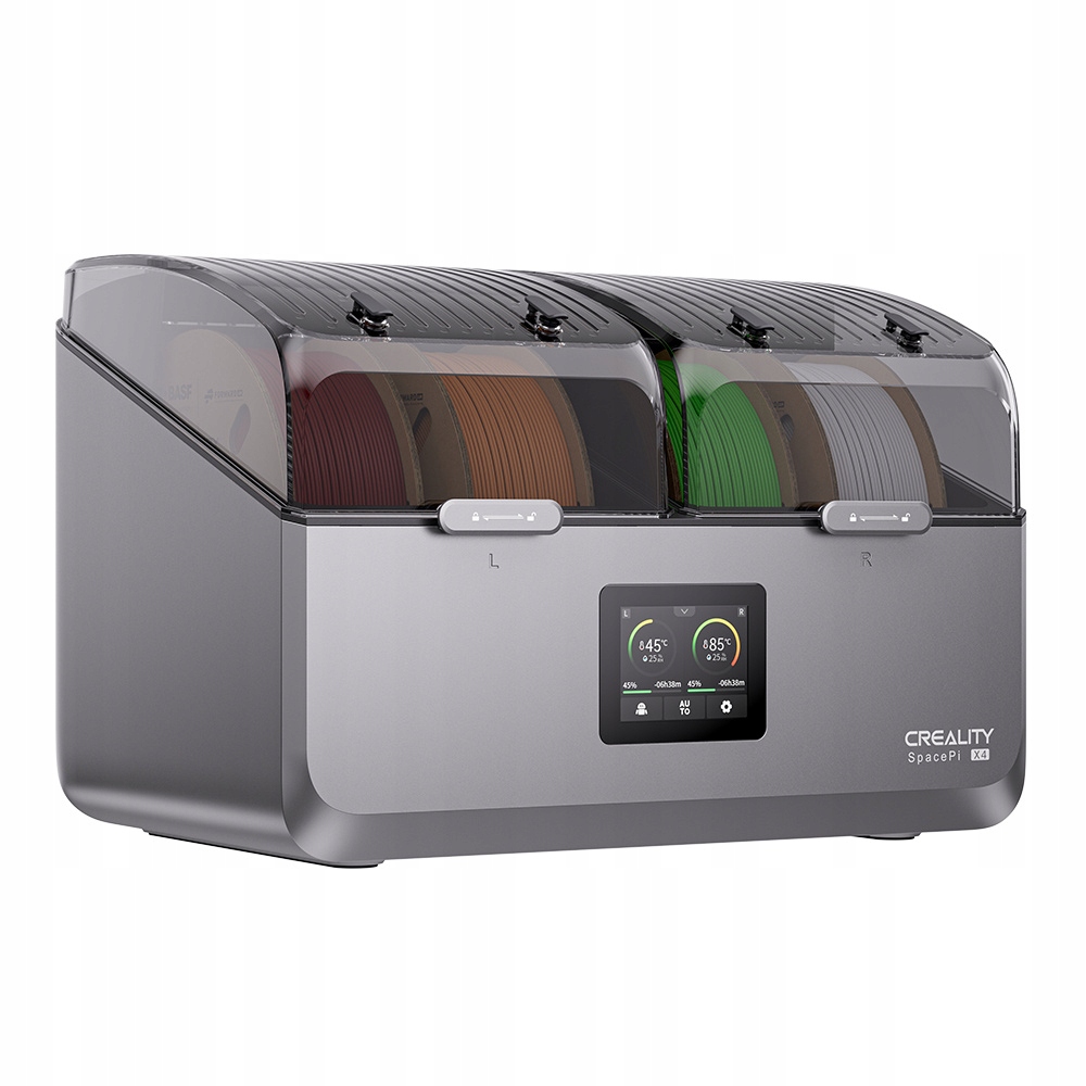 Creality SpacePi X4 dba o zachowanie idealnych warunków przechowywania filamentów, wykorzystując zaawansowaną technologię precyzyjnego podgrzewania. Użytkownik ma pełną kontrolę nad temperaturą i czasem suszenia, co pozwala na dopasowanie parametrów do konkretnego typu materiału. Bez względu na to, czy używasz higroskopijnych filamentów, takich jak PLA, czy bardziej wymagających tworzyw, jak PETG czy nylon, SpacePi X4 skutecznie eliminuje wilgoć, zapewniając stabilną jakość druku i niezawodne rezultaty.
