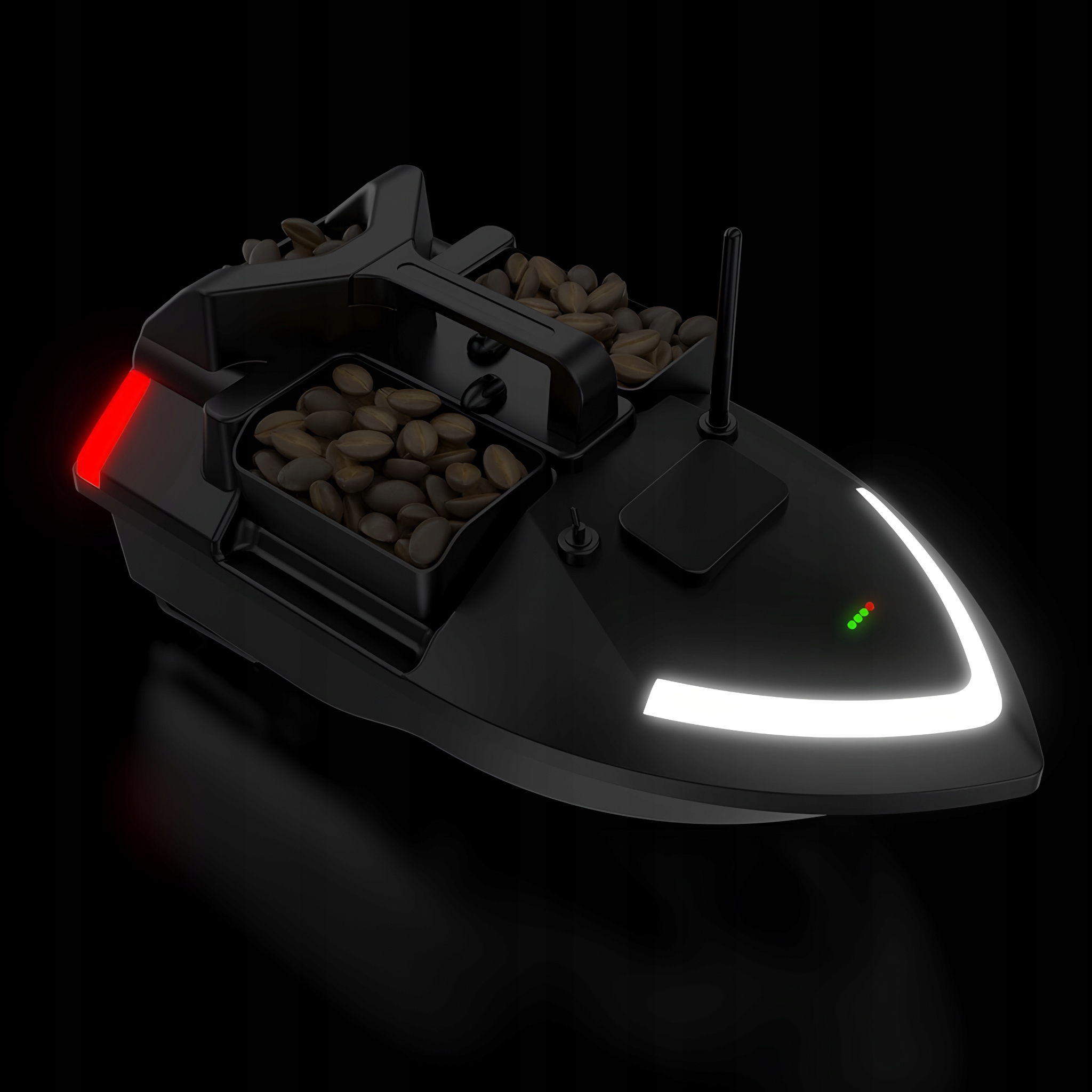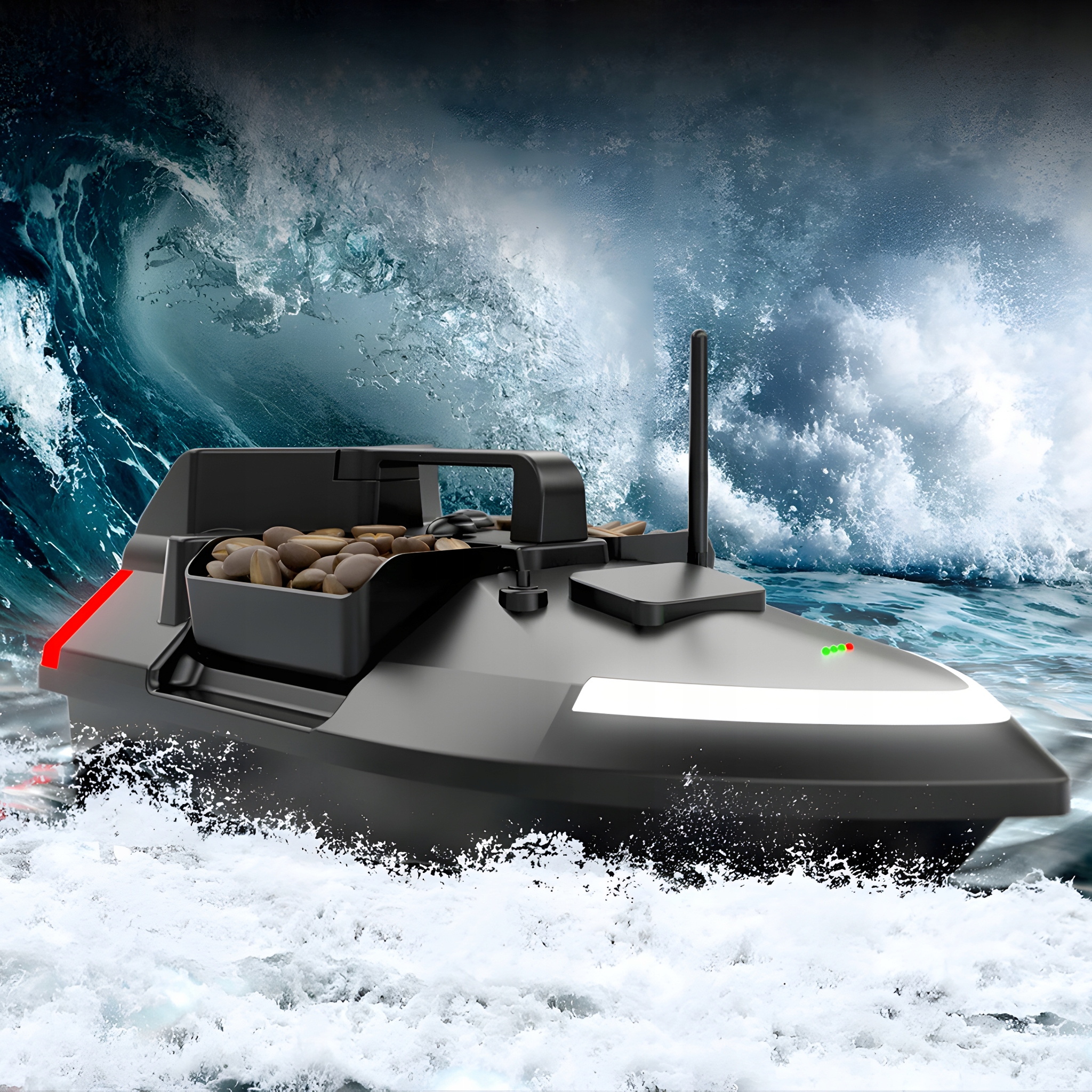Do łódki dołączono akumulator 7.4V o pojemności 12000 mAh. W pełni naładowany wystarczy na 4 godziny pływania* i pozwoli rozwinąć prędkość do 10 km/h