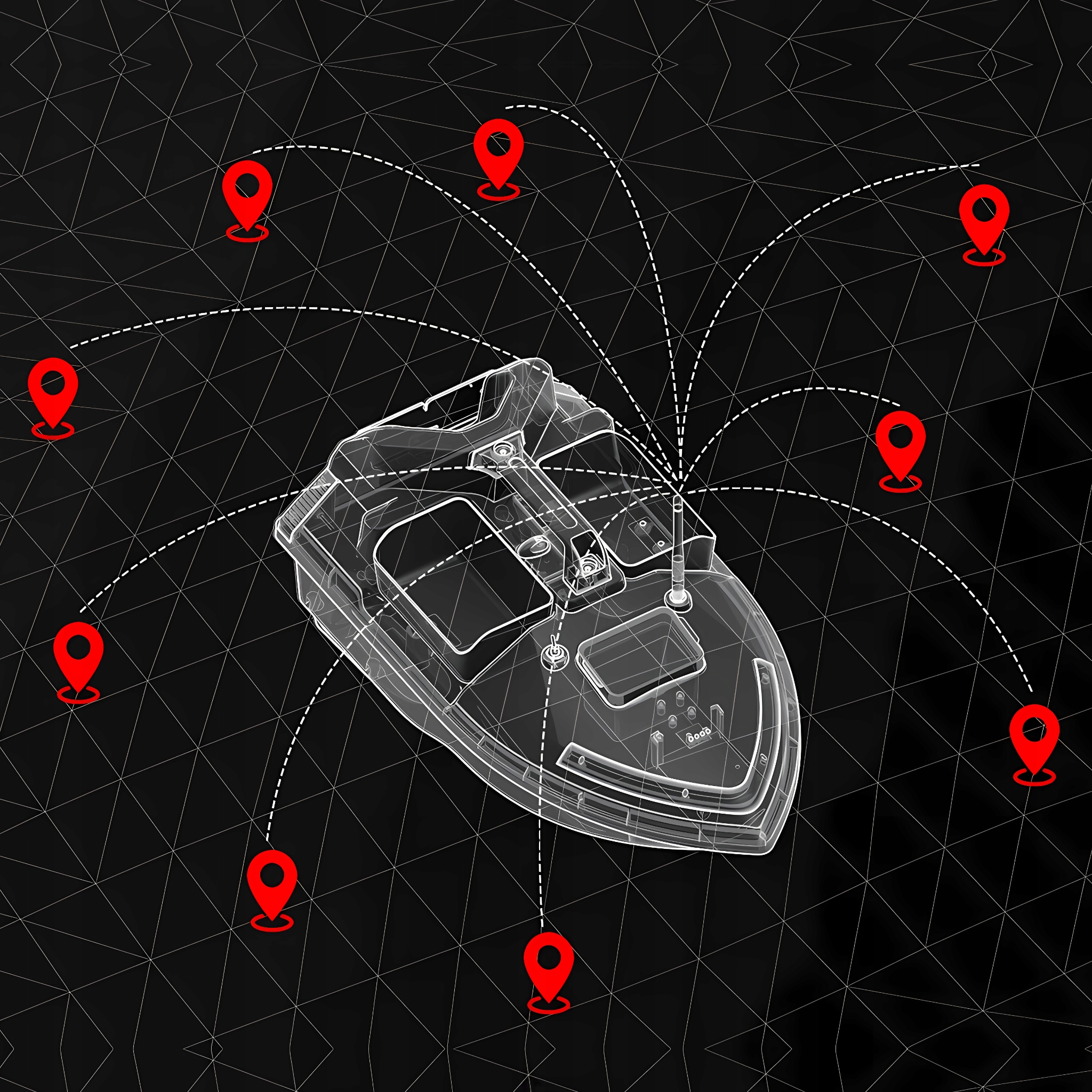 Funkcja GPS pozwala łatwo sterować łódką do wybranych punktów na zbiorniku wodnym.