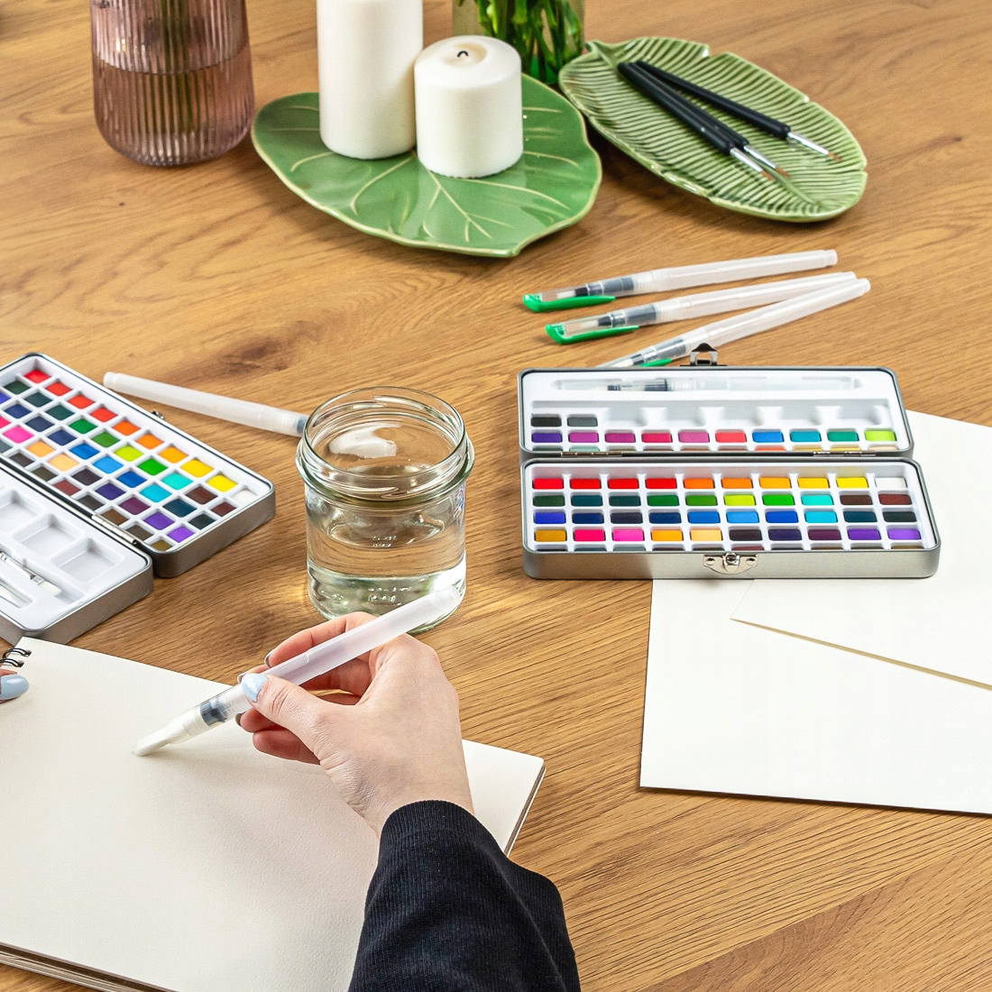 Ten zestaw 6 różnorodnych pędzli z wbudowanymi zbiornikami na wodę to kwintesencja wygody i swobody twórczej. Pozwoli Ci cieszyć się malowaniem w każdych warunkach, bez bałaganu i ograniczeń. Idealny dla artystów na każdym poziomie zaawansowania.