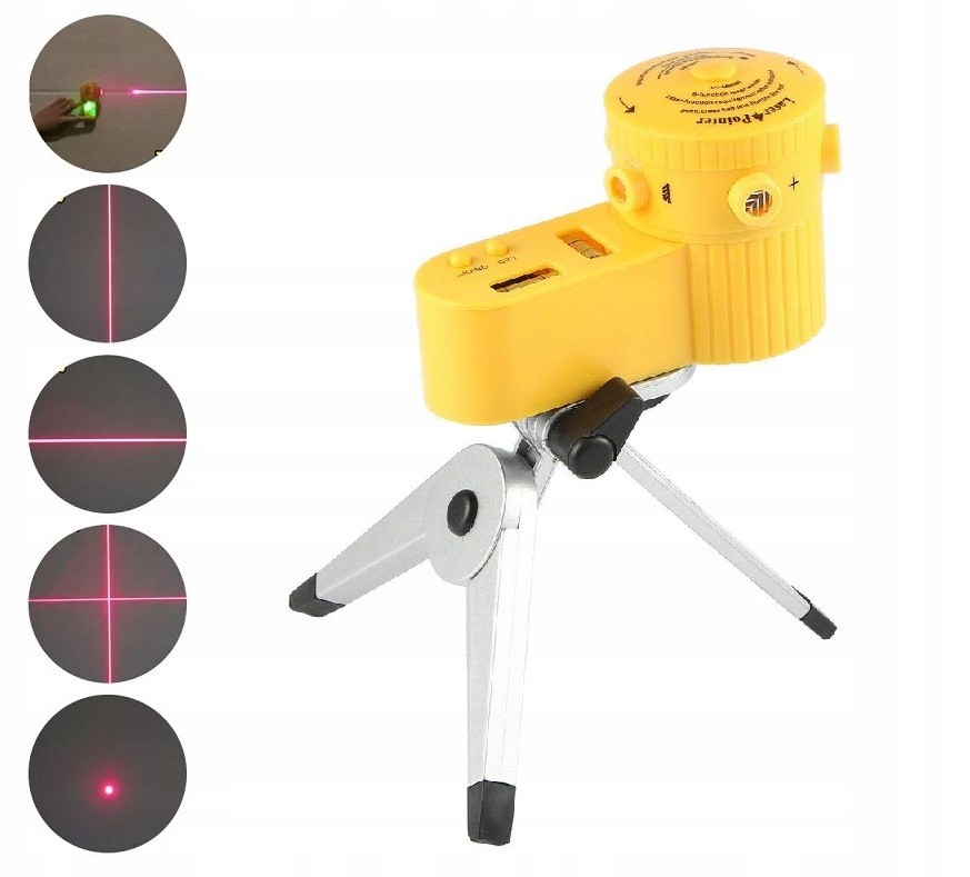 Przedmiotem oferty jest poziomica laserowa. Poziomica posiada 8 różnych trybów wyświetlania wiązek, dwie libelki i podświetlenie LED. W zestawie znajduje się też statyw, który pozwala ustawić poziomicę na dowolnej powierzchni.