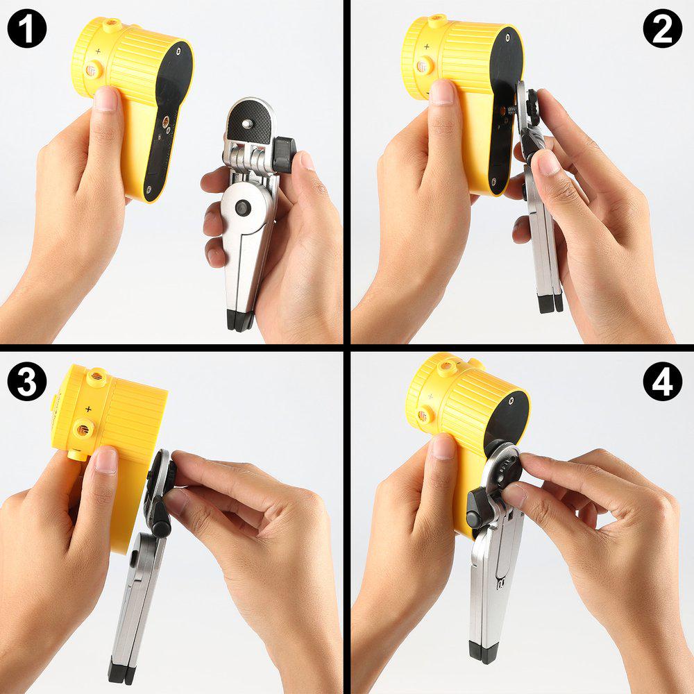 Statyw wystarczy przykręcić do podstawy poziomicy i rozłożyć nóżki. Nóżki mają antypoślizgowe końcówki, co pozwala na rozłożenie sprzętu na niemal każdym rodzaju powierzchni. Idealnie sprawdzi się w miejscach śliskich, stromych, suchych, mokrych, równych i pełnych przeszkód.