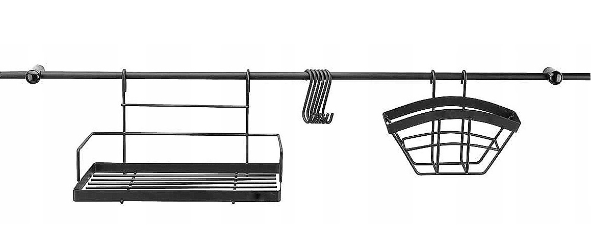 Reling kuchenny został wykonany ze stali nierdzewnej malowanej proszkowo na czarno.