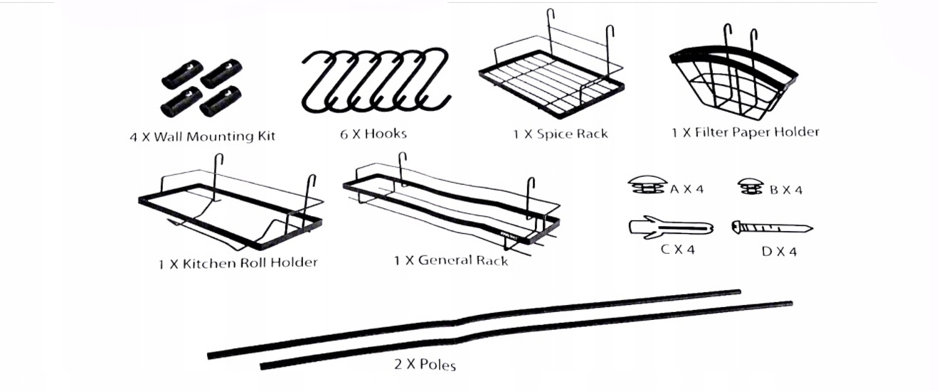 Zyskaj przestrzeń, funkcjonalność i nowoczesny design dzięki kompletnemu zestawowi relingów kuchennych Kamille! To idealne rozwiązanie, które odmieni Twoją kuchnię – wszystko pod ręką, estetycznie uporządkowane.