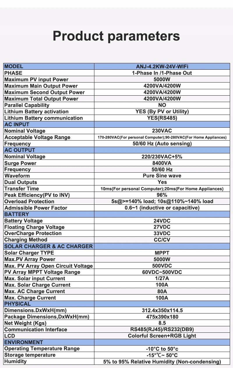 Absolutna nowość! Aktualnie uznany najprawdopodobniej za najlepszy i najbardziej zaawansowany Inwerter hybrydowy o ciągłej mocy wyjściowej 4200W (4,2kW), z kontrolerem ładowania MPPT do 100A do pracy z akumulatorami 24V!