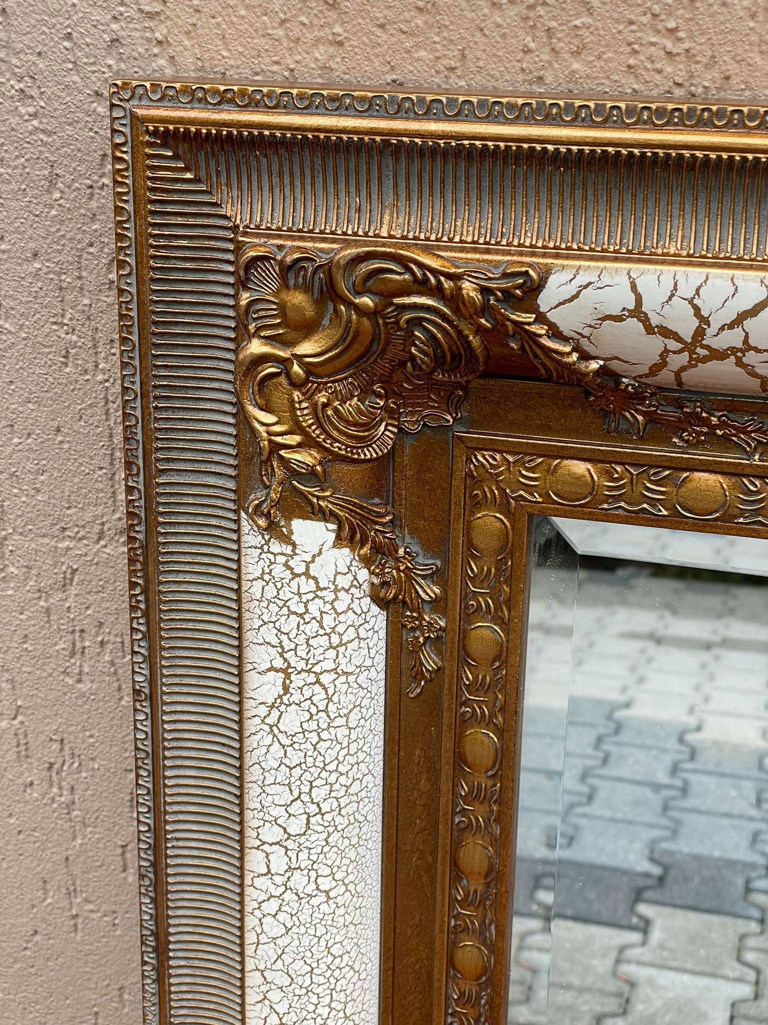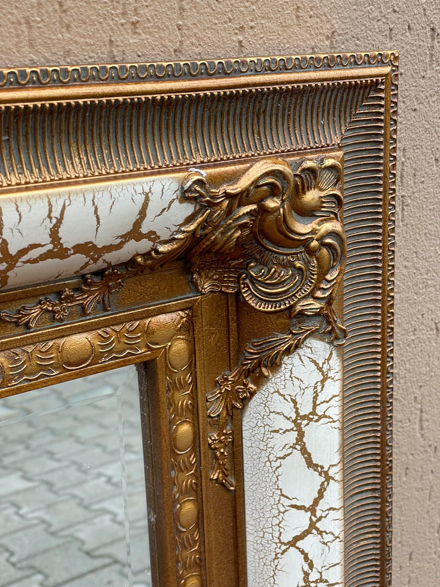 LUSTRO W ZŁOTO BEŻOWEJ PĘKATEJ RAMIE.
