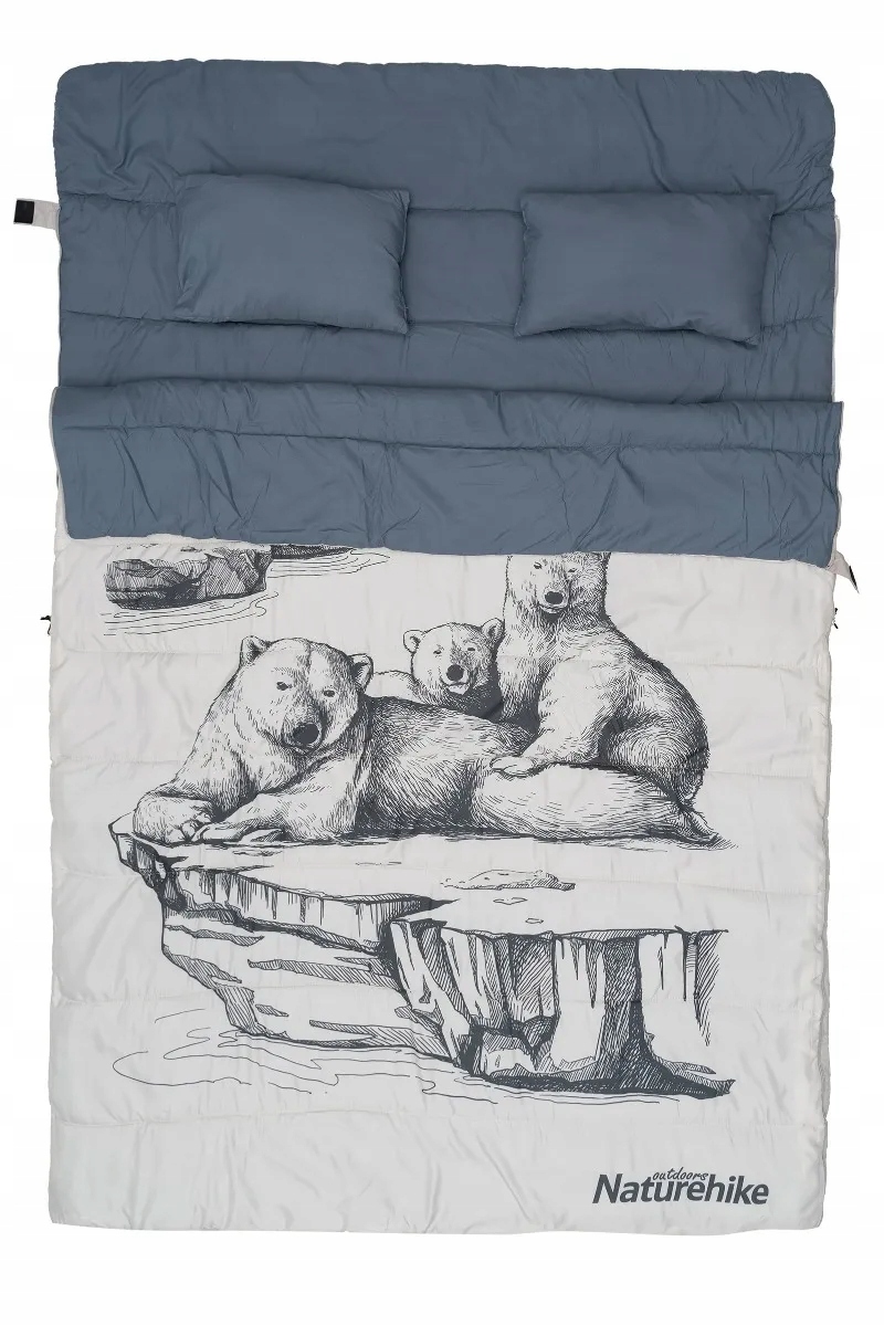 Dwuosobowy śpiwór kempingowy typu kołdra z dołączonymi dwiema poduszkami