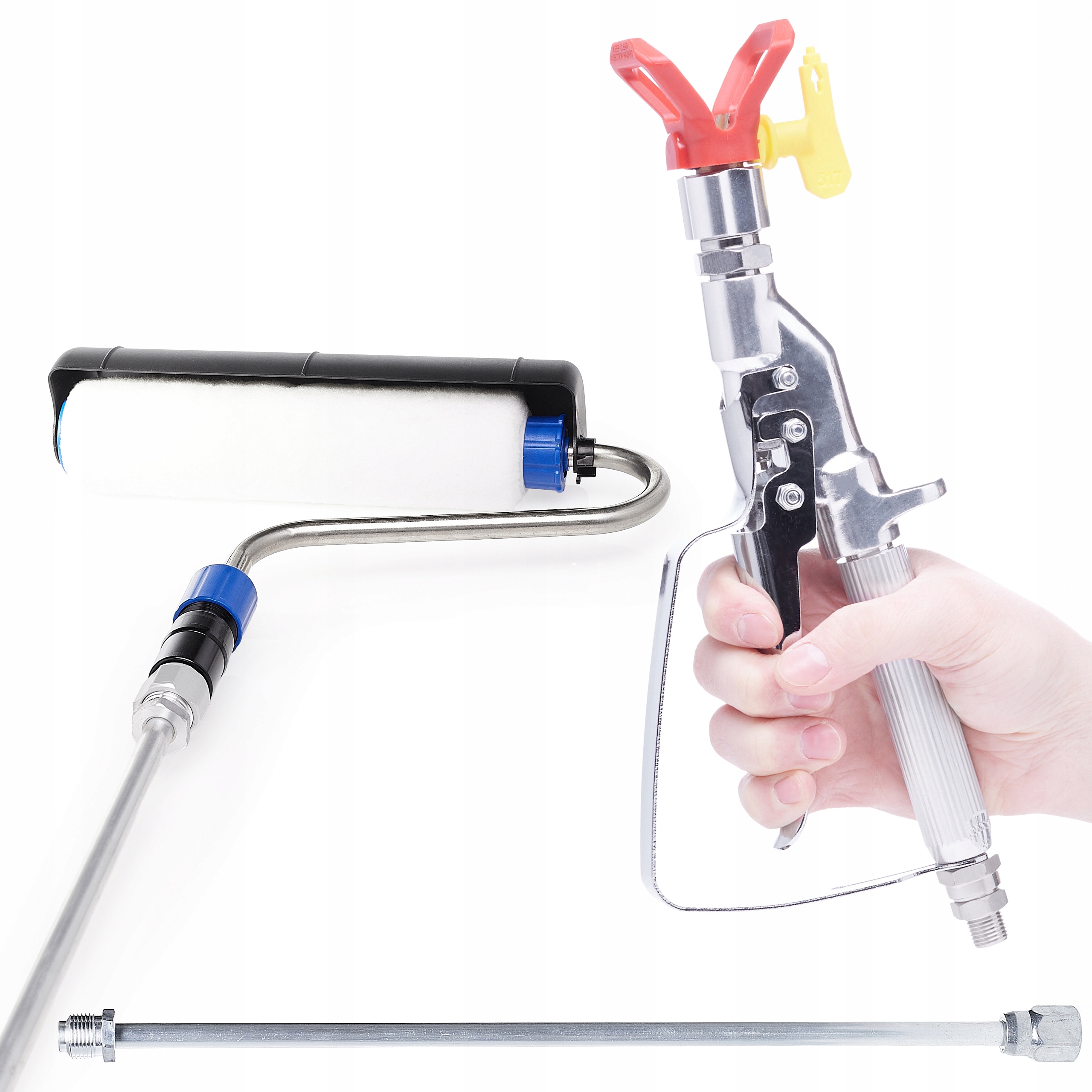 Lanca przedłużająca 75 cm (w zestawie znajduje się także lanca 30 cm) pozwala dotrzeć w trudno dostępne miejsca, a końcówka wałek do agregatu zamienia pistolet w praktyczne narzędzie wałkowe, gwarantując równomierne wykończenie powierzchni.