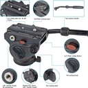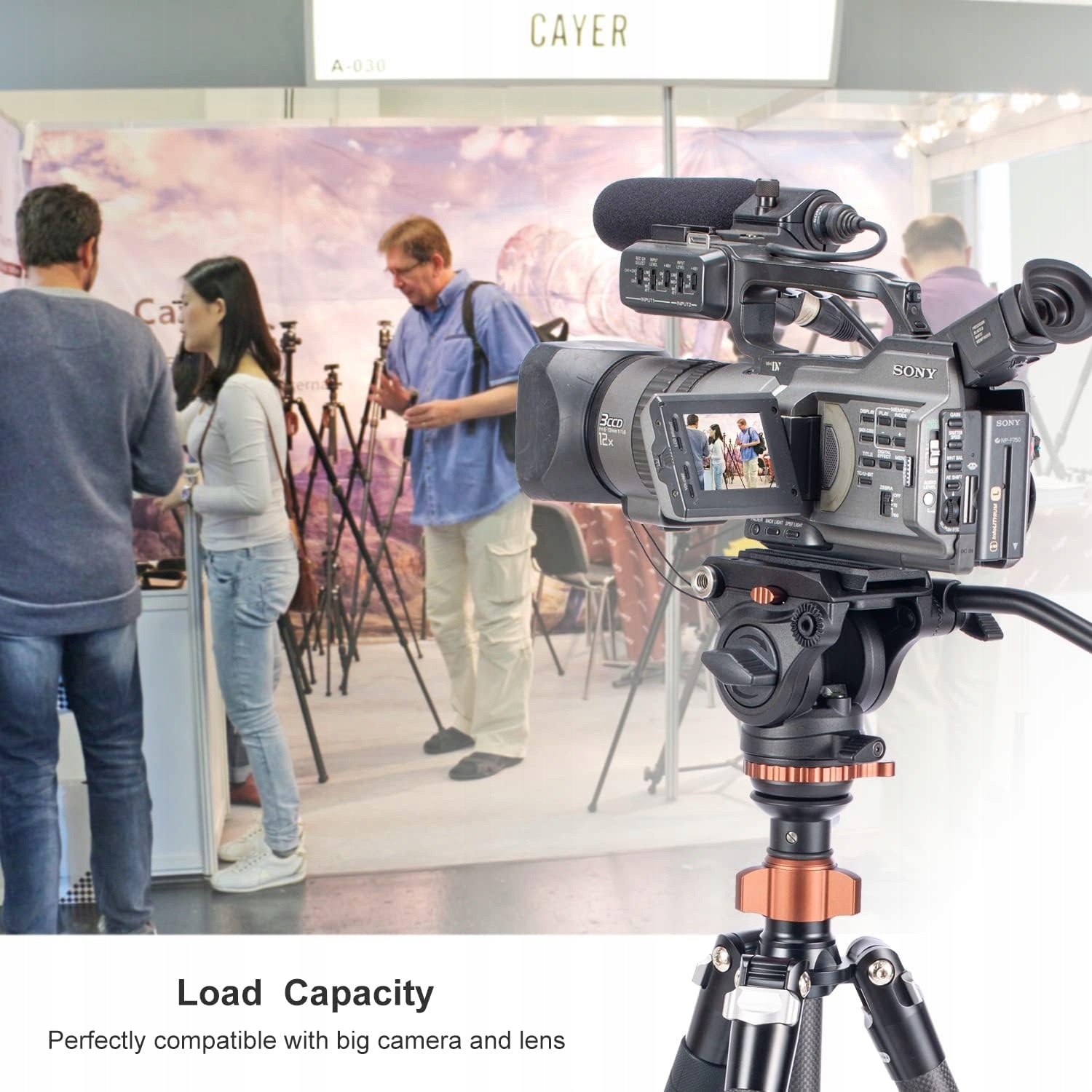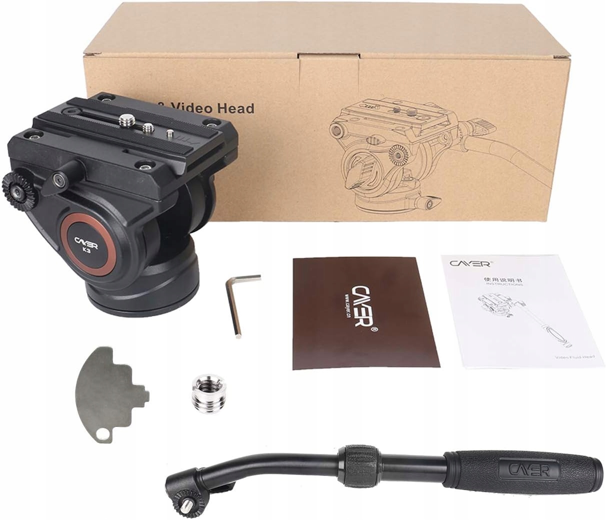 Głowica statywu do kamery wideo Cayer K3 do aparatu Canon Nikon, Sony, Olympus, Panasonic, DSLR, ze śrubą montażową 3/20.3 cm i 1/10.2 cm, uchwyt 2 sekcje