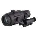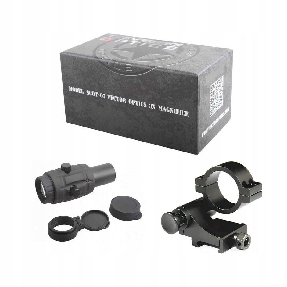 Powiększalnik do kolimatora Vector Optics Maverick 3 x 26 przeznaczony do użycia razem z kolimatorem, umożliwia szybkie dostosowanie karabinka do strzelania na dalszy dystans, przez dodanie trzykrotnego powiększenia. Jest to szczególnie przydatne w przypadku zawodów w kategorii strzelectwa dynamicznego. Wykorzystane aluminium 6061 T6 zapewnia dużą wytrzymałość. Powiększalnik odporny jest na mocne wstrząsy i odrzut, przez co idealnie nadaje się do zamontowania na broni palnej. Dołączony do zestawu montaż pozwala na montaż powiększalnika bezpośrednio na szynie Picantinny. System Flip pozwala na szybkie odsunięcie powiększalnika na bok i celowanie bez dodatkowego przybliżenia.