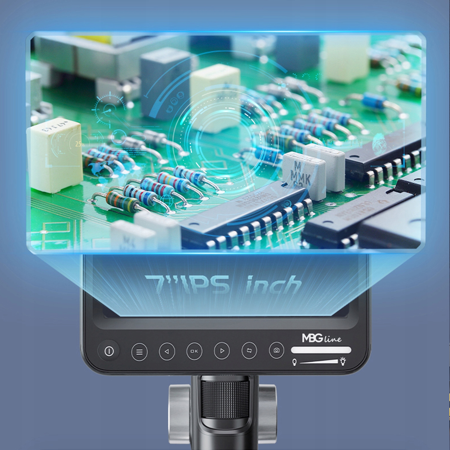 Oferowany mikroskop dzięki zastosowaniu dużej matrycy 12MPIX i ekranu LCD o przekątnej 7" IPS HD pozwala na żywo oglądać obiekty w powiększeniu.