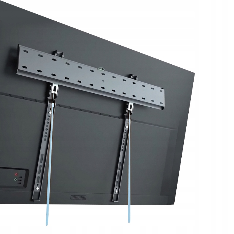 Ultracienki uchwyt ścienny zaprojektowany z myślą o oszczędności miejsca dla niskoprofilowych telewizorów, tworzy elegancki i stylowy wygląd na ścianie. Wbudowana poziomica zapewnia idealne poziome ustawienie, a silikonowe podkładki zapobiegają zarysowaniom lub uszkodzeniom ściany. Dodatkowo, sprężynowe zamki z paskiem BP0117 pozwalają na szybkie i bezwysiłkowe montowanie i zdejmowanie telewizora.