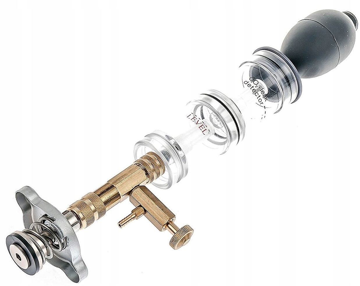 Przyrząd pozwala na łatwą diagnozę i szybkie wykrycie uszkodzeń uszczelki pod głowicą. W przypadku uszkodzonej uszczelki pod głowicą lub samej głowicy część gazów spalinowych. zawierających m.in. CO2 trafia do układu chłodzenia. Zasada działania przyrządu opiera się właśnie na pomiarze zawartości CO2 w układzie chłodzenia. Płyn reakcyjny w komorze testera będzie reagował z gazami z układu chłodzenia i w przypadku zwiększonej zawartości CO2 zmieni barwę. Dwukomorowa konstrukcja przyrządu (z filtrem pomiędzy komorami) pozwala na odseparowanie pozostałości w pierwszej komorze (np. kropel płynu chłodniczego). które mogłyby negatywnie wpłynąć na wynik testu.