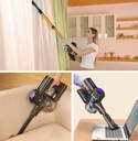 Elastyczna składana rączka: ten odkurzacz akumulatorowy ma innowacyjną składaną rączkę, której punkt składania znajduje się w górnej środkowej części. Oznacza to, że długość odkurzacza akumulatorowego po złożeniu pozostaje dłuższa niż w przypadku konwencjonalnych odkurzaczy akumulatorowych. Odkurzacz bezprzewodowy jest szczególnie przydatny do czyszczenia trudno dostępnych miejsc, takich jak pod łóżkami i sofami.