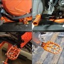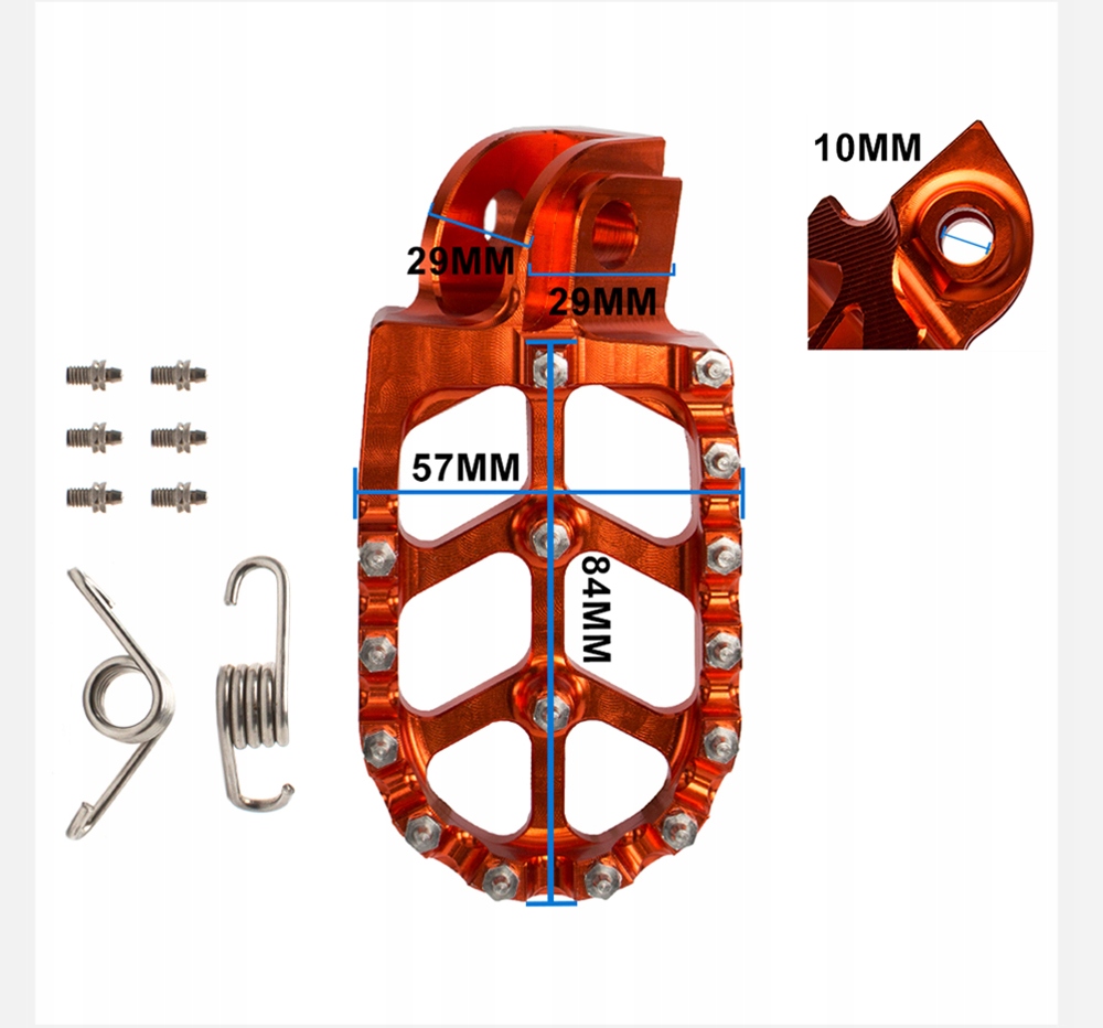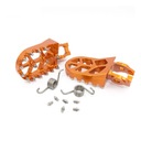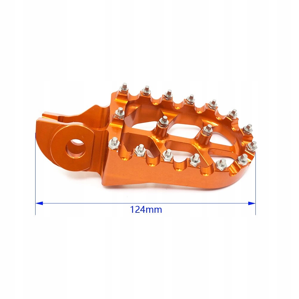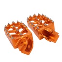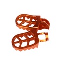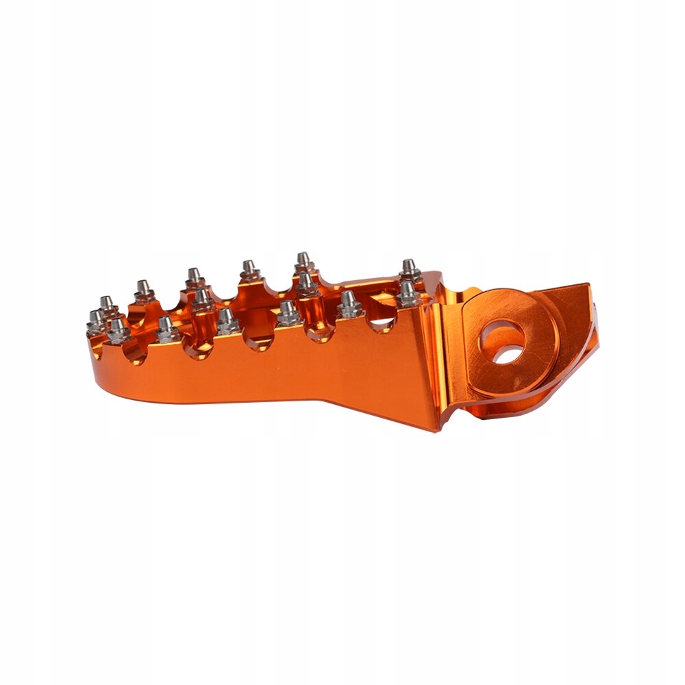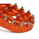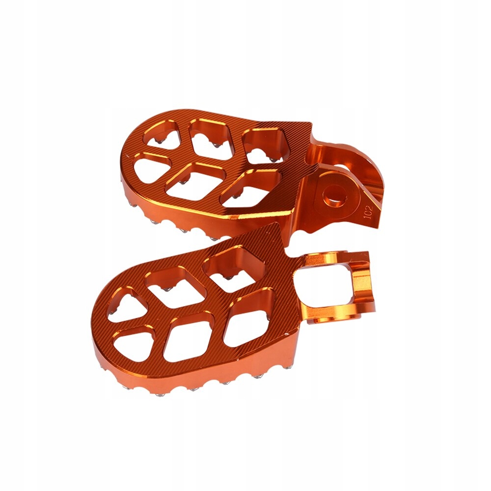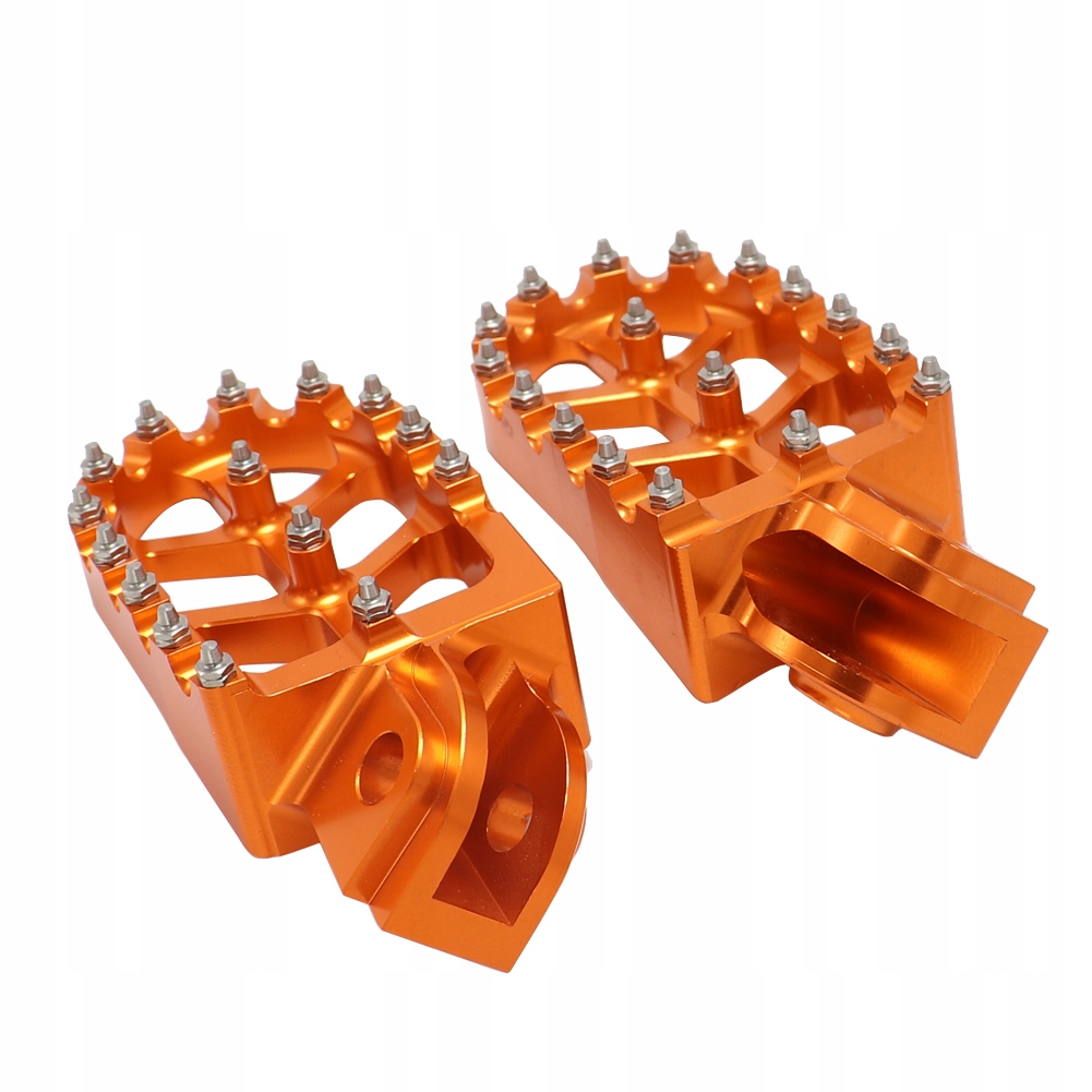 Podnóżki wykonane są z kutego aluminium T7 7075, jednego ze stopów o najwyższej wytrzymałości. Zapewnia im to niską wagę z zachowaniem optymalnej wytrzymałości. Duży powierzchnia styku z butem i struktura kolcowa zapewniają odpowiednią przyczepność w każdych warunkach. Są szersze od standardowych - większa powierzchnia styku podeszwy z podnóżkiem oraz ostre i wymienne zęby zwiększają przyczepność buta dzięki czemu pewniej i stabilniej prowadzi się motocykl. Ostre zęby wykonane z hartowanej stali i są odporne na ścieranie. Są zdejmowane i wymienne.