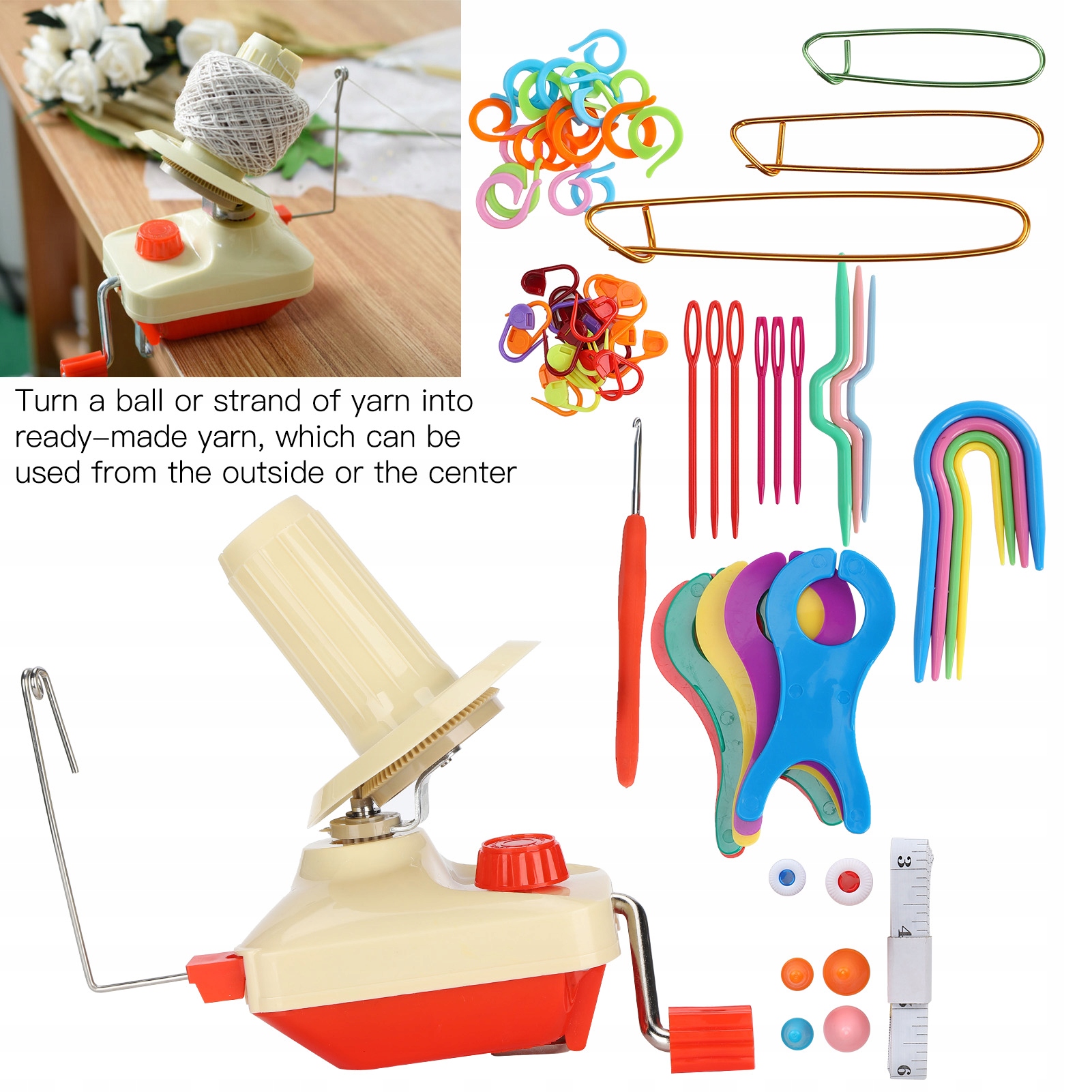 📌4. Zestaw narzędzi jest dostępny do użytku, który obejmuje nawijak przędzy, szydełkowane haczyk, aluminiową szpilkę, igły z tworzywa sztucznego itp., Zatrudnicie większość twoich potrzeb szycia.