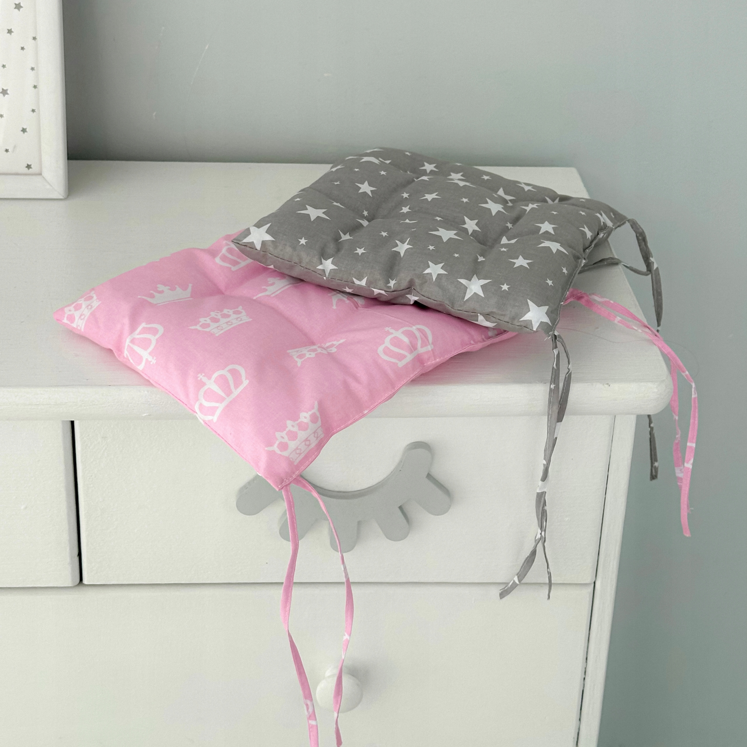 ✅ Stylowe kolory i wzory – dostępna w wariantach: szary z gwiazdkami, różowy z koroną.