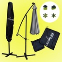 Dzięki stabilnej konstrukcji oraz dołączonemu pokrowcowi ochronnemu, parasol posłuży przez wiele sezonów, zachowując swój nienaganny wygląd. Wysięgnik pozwala na pełne wykorzystanie przestrzeni pod parasolem – bez przeszkadzającego centralnego słupa.
