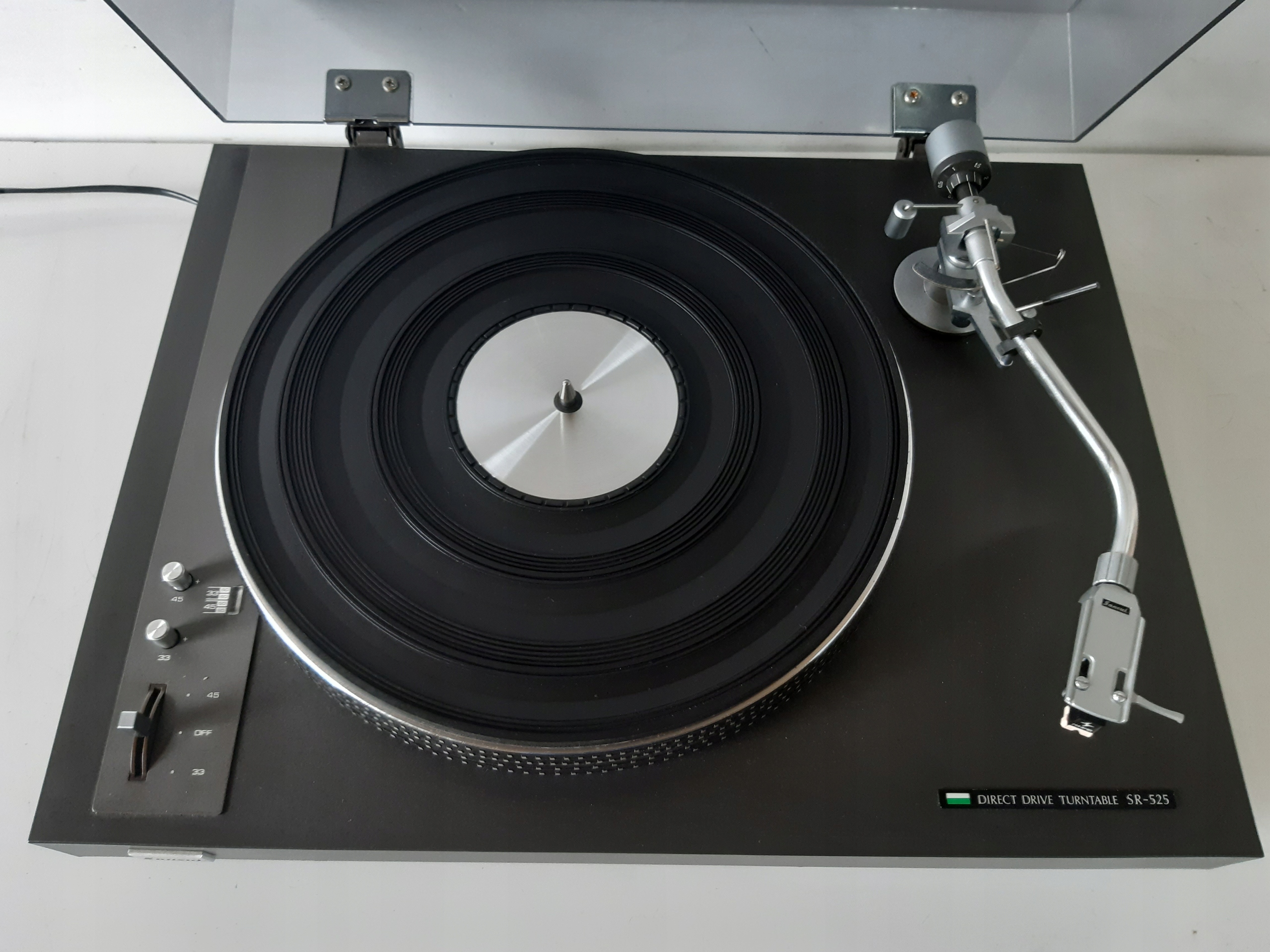 Gramofon wysokiej klasy z bezpośrednim napędem SANSUI SR-525. To zdecydowanie jeden z topowych modeli firmy.. Bezpośredni, precyzyjnie sterowany napęd gramofonu z silnikiem z dużym momentem obrotowym odpowiada za idealne obroty talerza. Wysokiej klasy ramię typu "S" ,oryginalny headshell w pełni regulowane na wysokość, pochylenie i anty scating. Bardzo masywne, drewniane, dziesięciokilogramowe szasi w pięknym minimalistycznym stylu.Pełna regulacja obrotów plus lampa stroboskopowa, Całe urządzenie utrzymane pięknym stanie z minimalnymi śladami użytkowania (patrz zdjęcia). Technicznie stan idealny, kilka lat temu przeszedł przegląd techniczny i działa idealnie. Gramofon sprzedawany ze świetną wkładką Shure m44 mb.