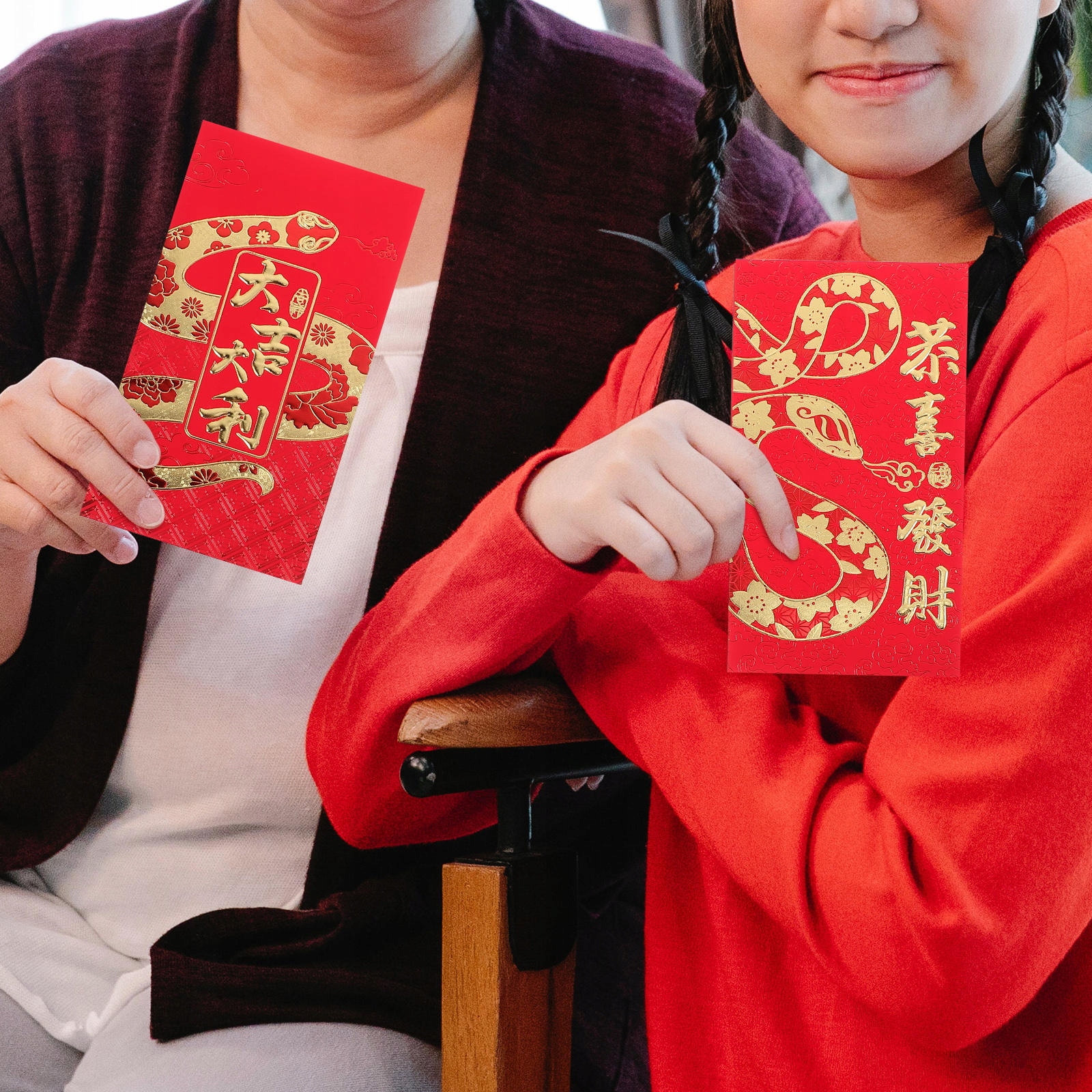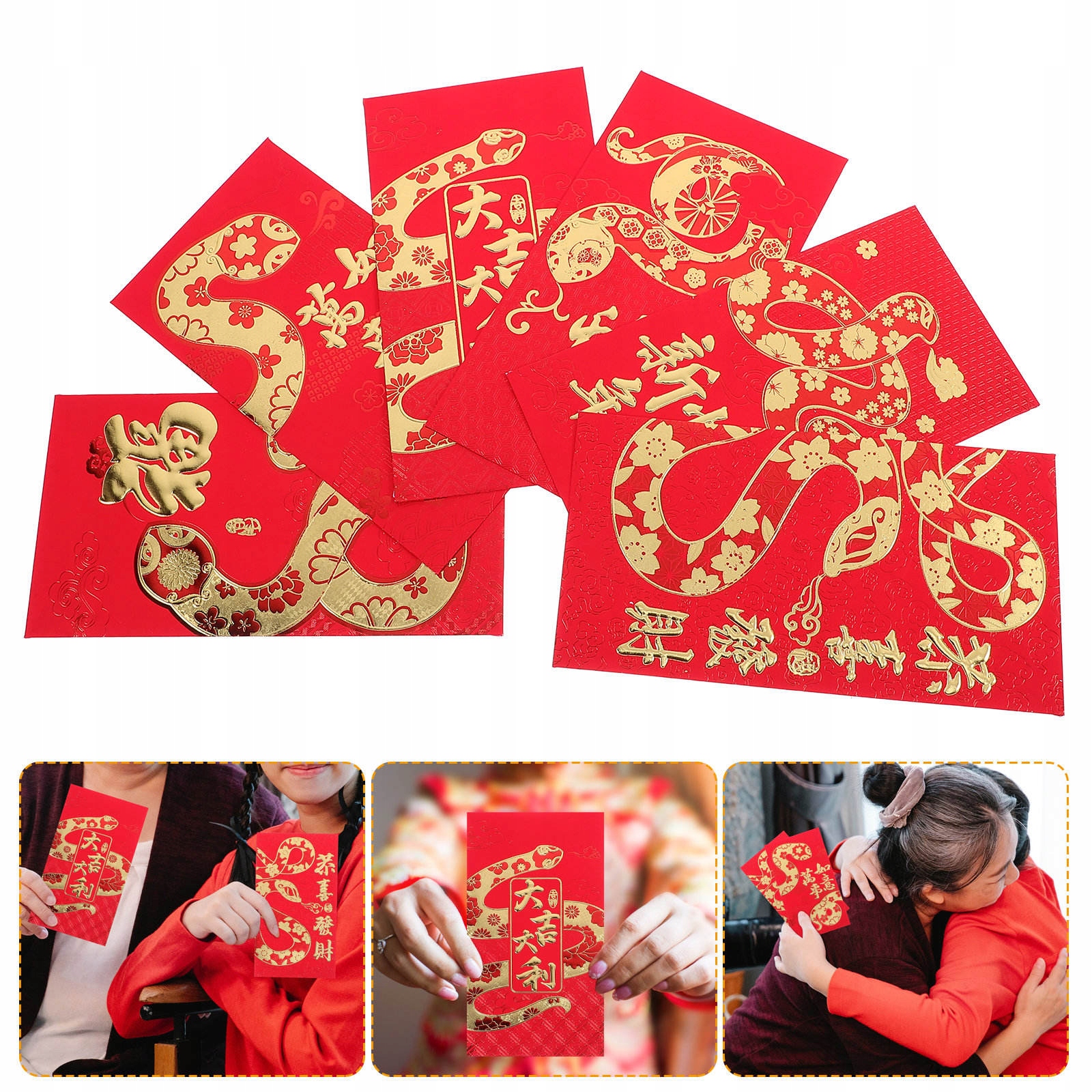 ✅Eleganckie i świąteczne: czerwone koperty z zachwycającymi ilustracjami zodiaku węża z kreskówek