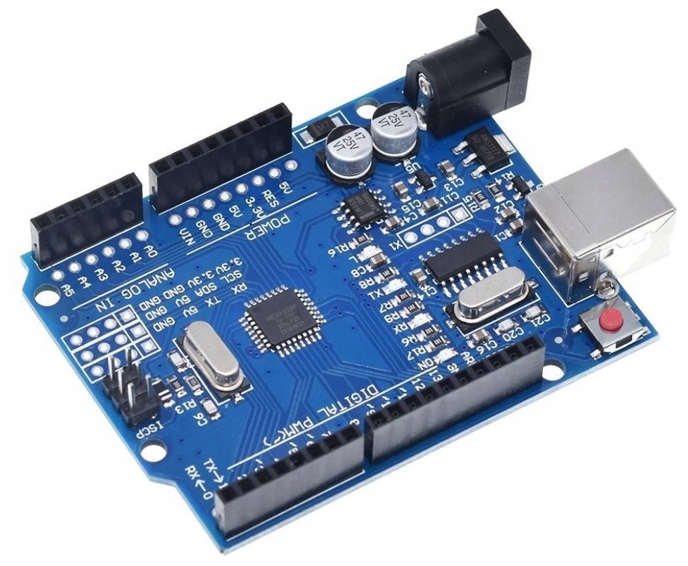 Это главный элемент, который позволяет программировать и управлять остальными компонентами. Модуль на основе микроконтроллер ATmega328P, имеющий 14 цифровых выводов ввода / вывода, 6 аналоговых выводов входы, разъем USB для связи с компьютером и питание через порт или внешний аккумулятор. Это делает его идеальным для изучения и выполнения многих проектов.